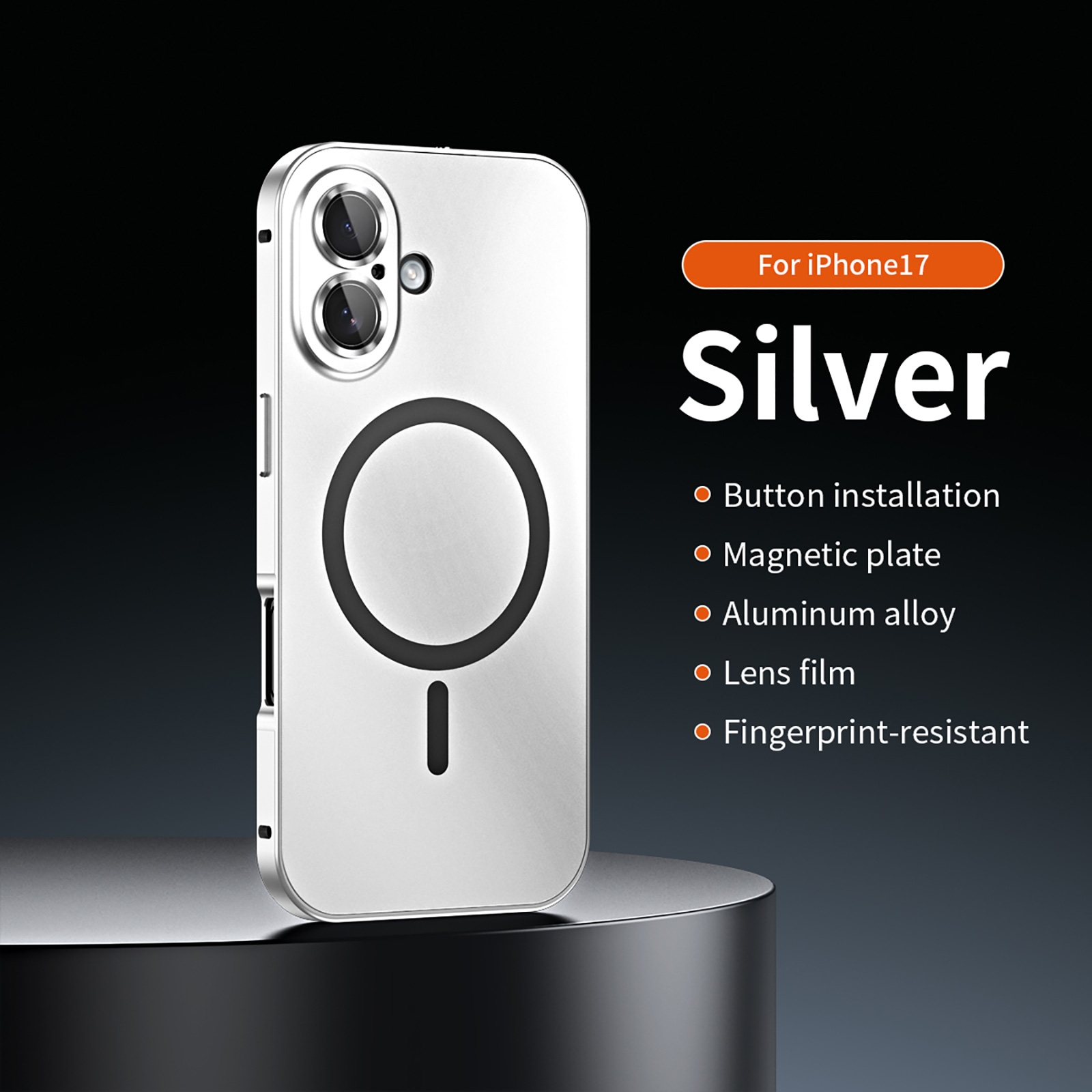 Magnetic Aluminum Alloy Case with Lens Film for iPhone 17 - Silver