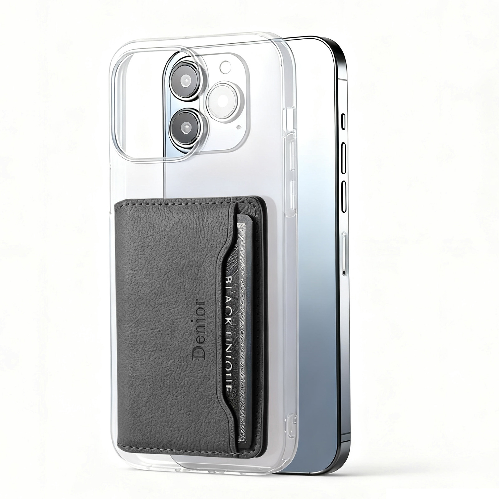 MagSafe PU Leather Card Holder – Black Magnetic Wallet for iPhone