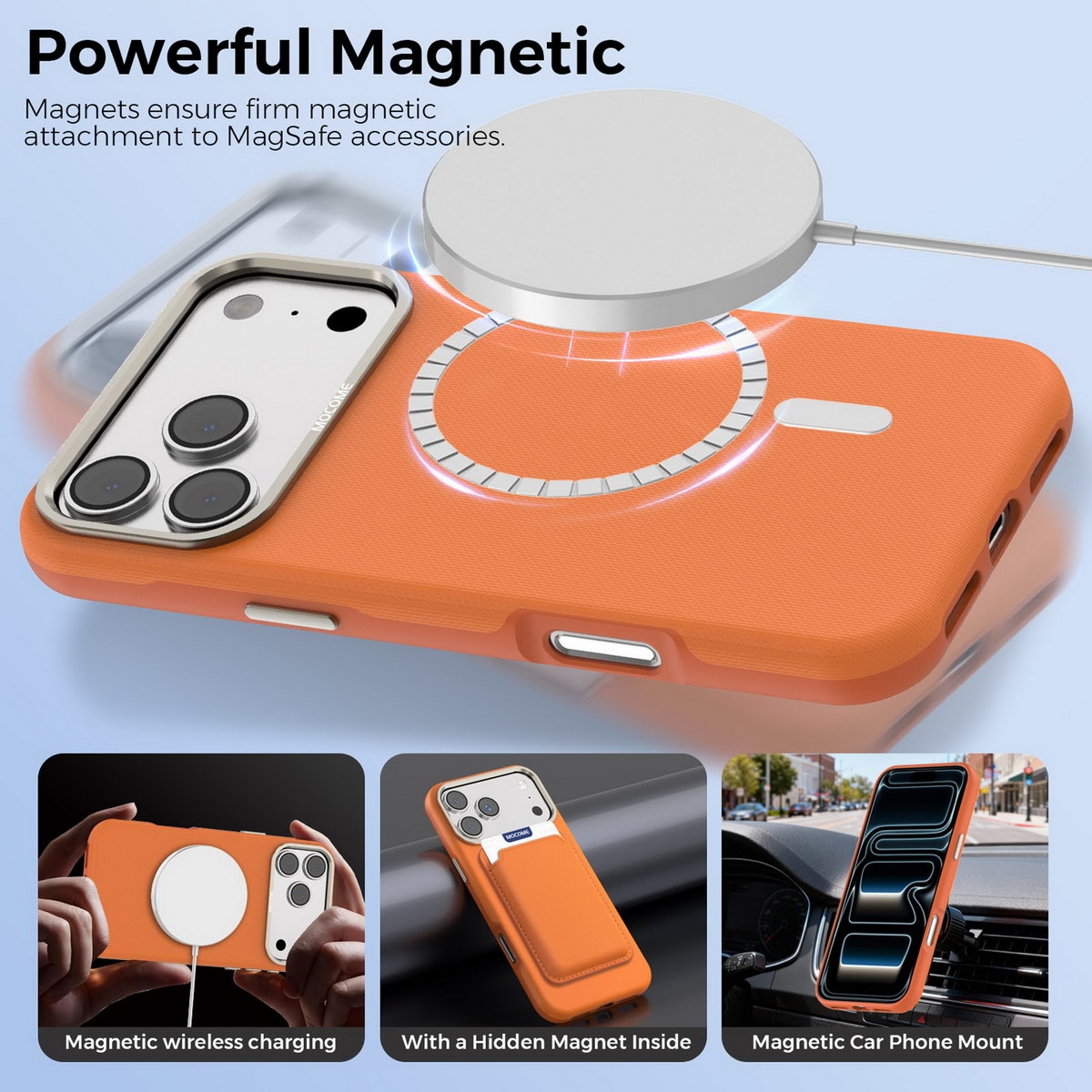 Matte Grid Texture Case for iPhone 17 Pro - Metal Camera Frame & Magnetic Charging Support, Orange