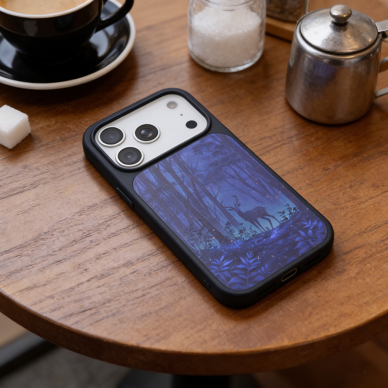 Moonlit Deer in Forest Magnetic Phone Case for iPhone 17 Pro Max, Black