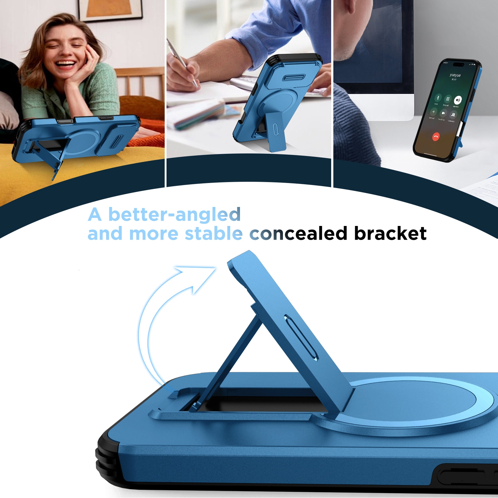 360 Rotation Kickstand Magnetic iPhone Air Case - Airbag Shockproof Metal Stand, Blue