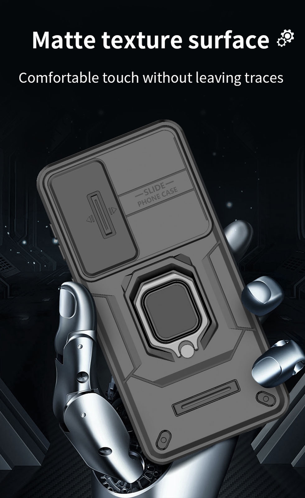 Phone Case for S26 Plus with Sliding Lens Cover & Foldable Ring Holder, Black