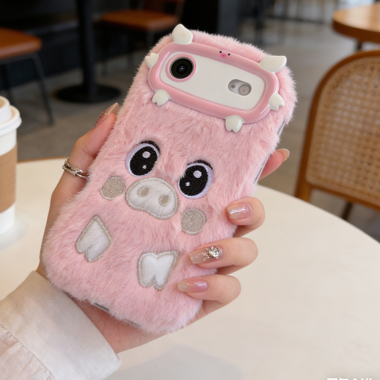Pink Plush Silicone Monster Phone Case for iPhone Air – Soft Furry Cute Protective Cover