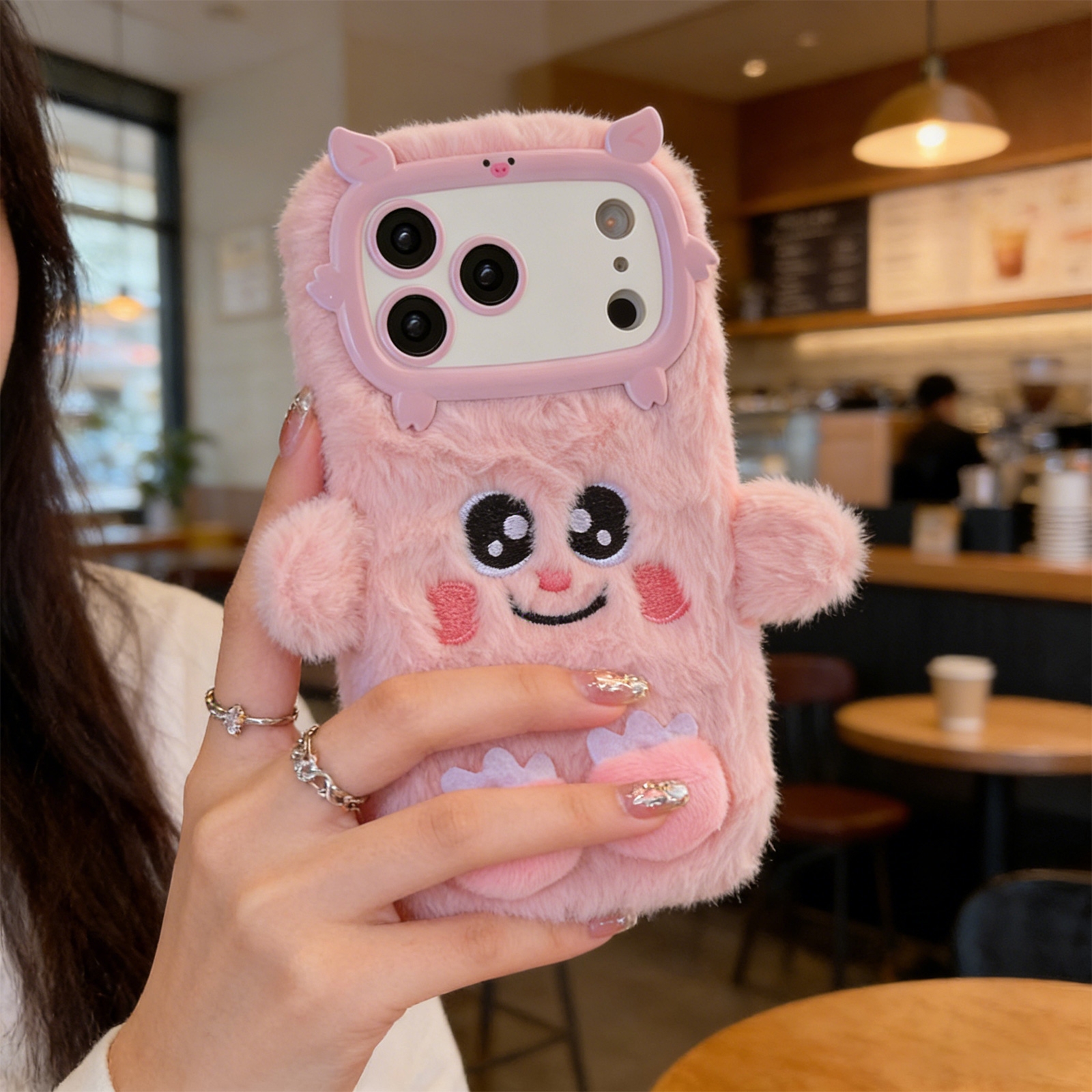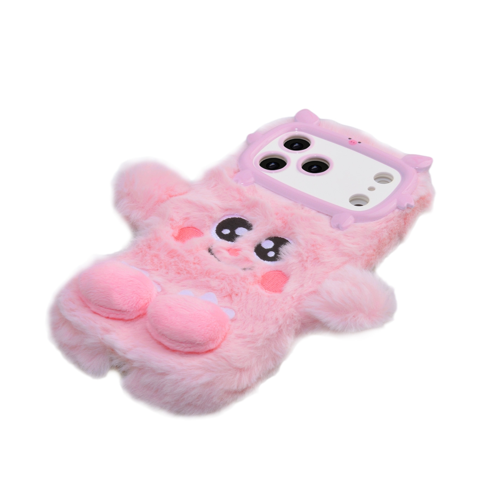 Pink Plush Silicone Monster Phone Case for iPhone 17 Pro – Soft Furry Cute Protective Cover