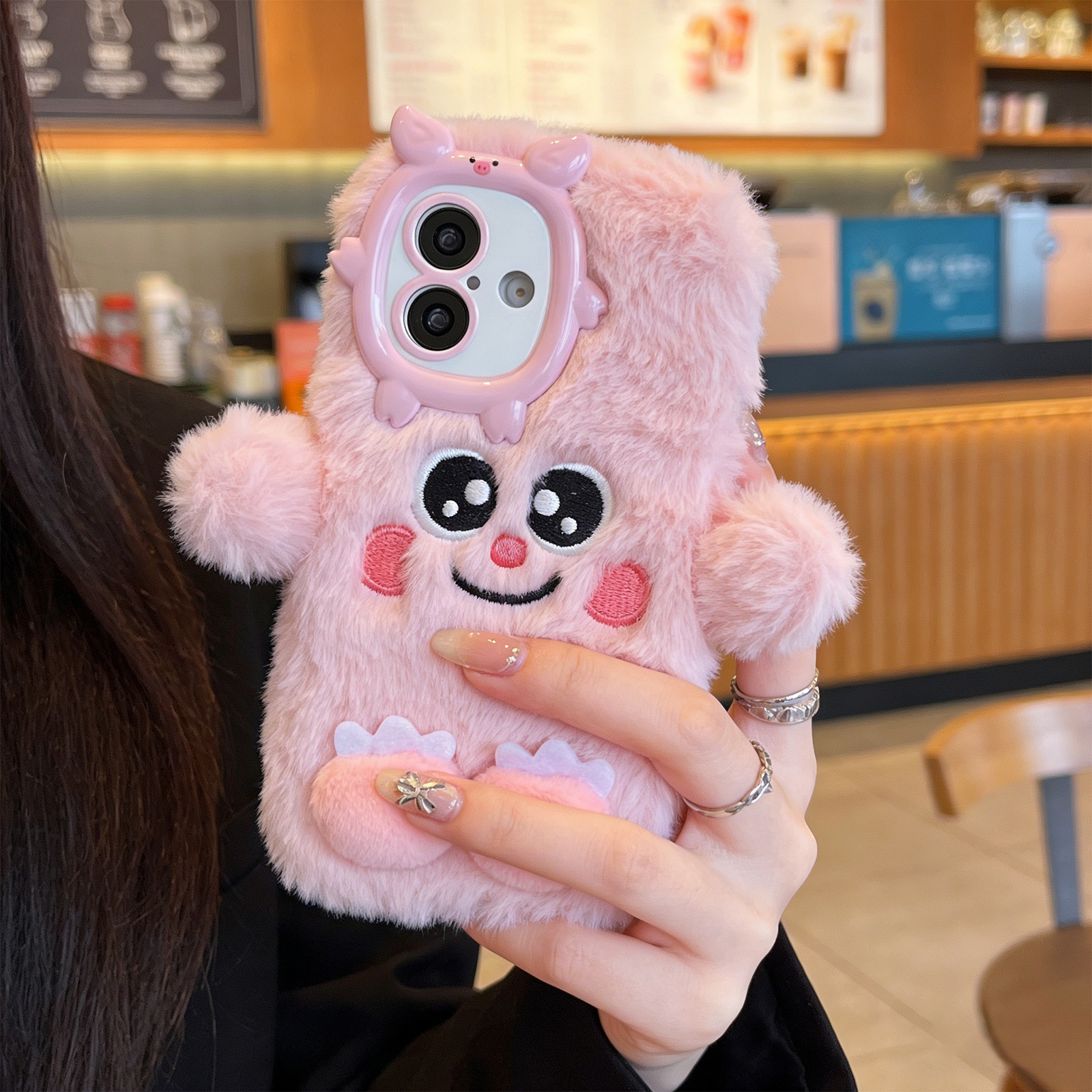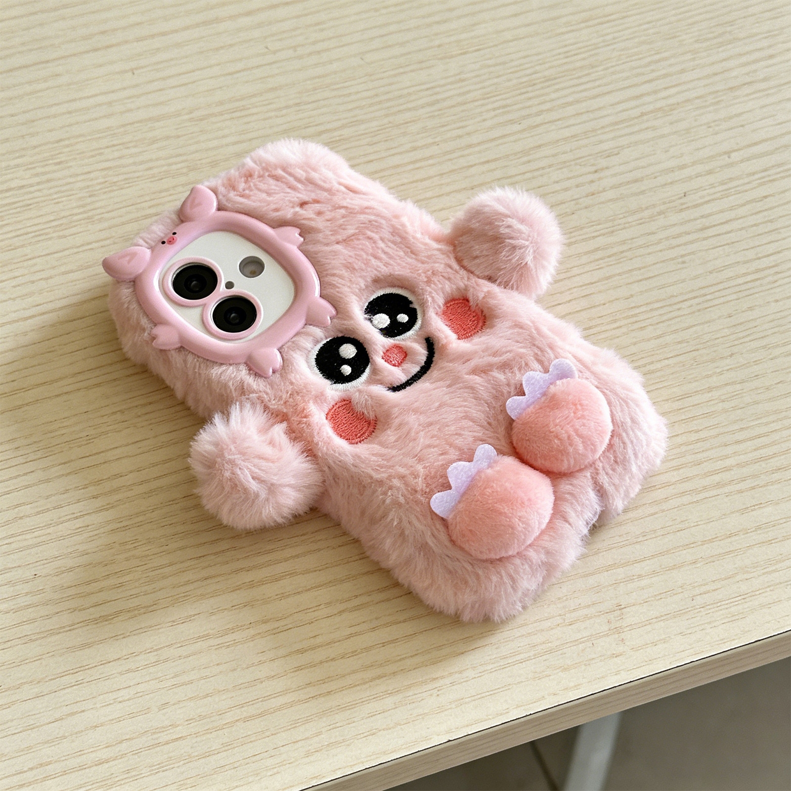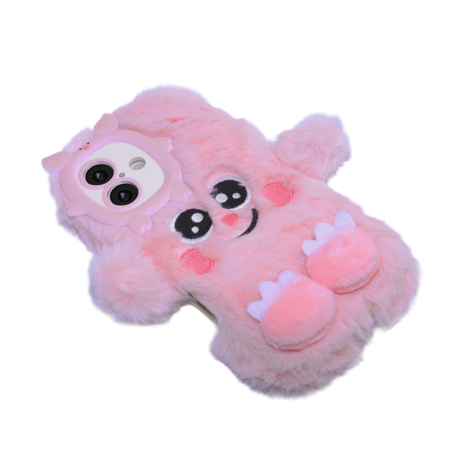 Pink Plush Silicone Monster Phone Case for iPhone 17 – Soft Furry Cute Protective Cover