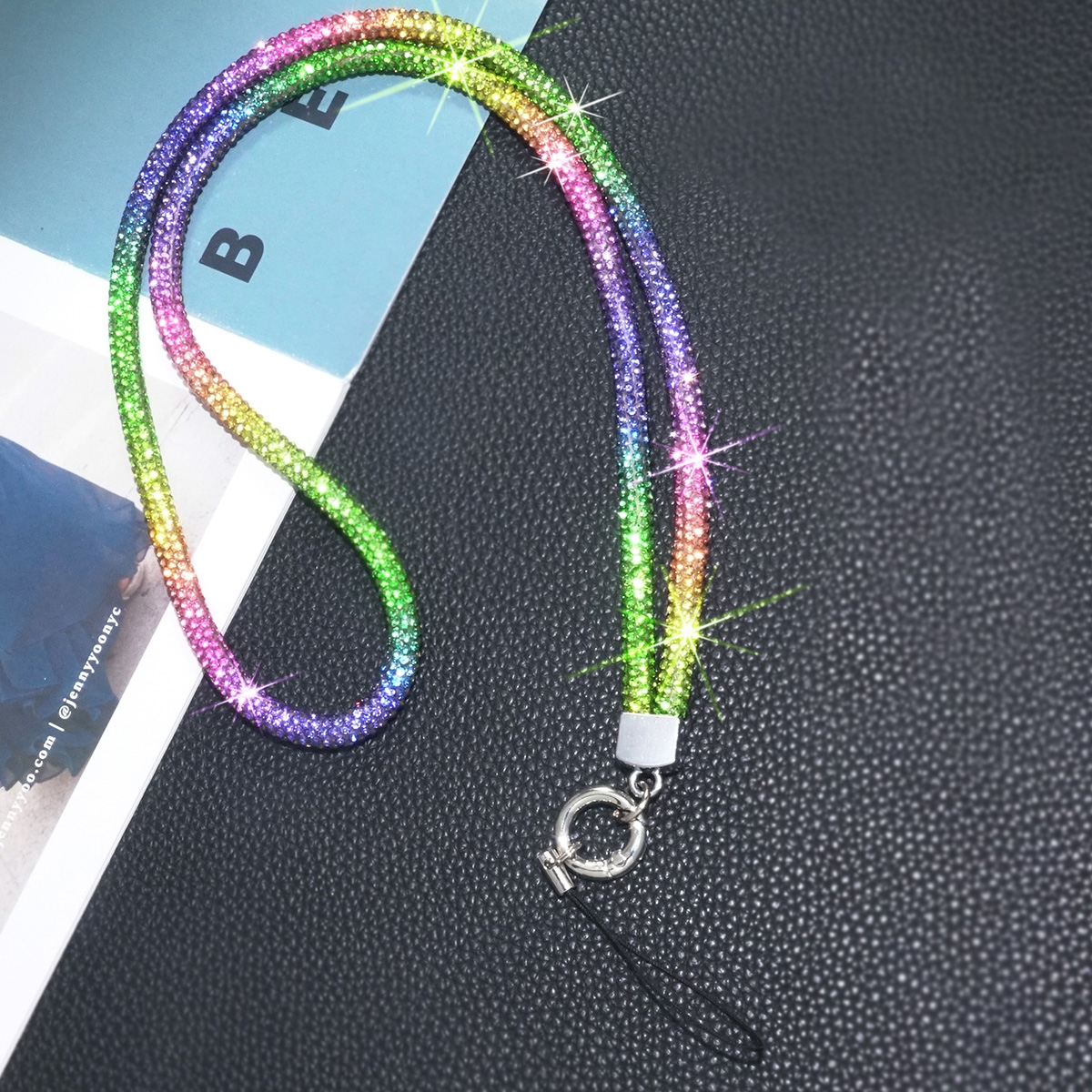 Premium Full Rhinestone Lanyard - 0.6cm Diameter Phone Neck Strap, Rainbow Multi-Color