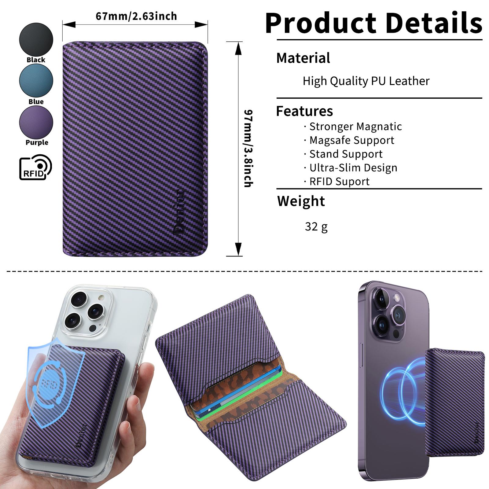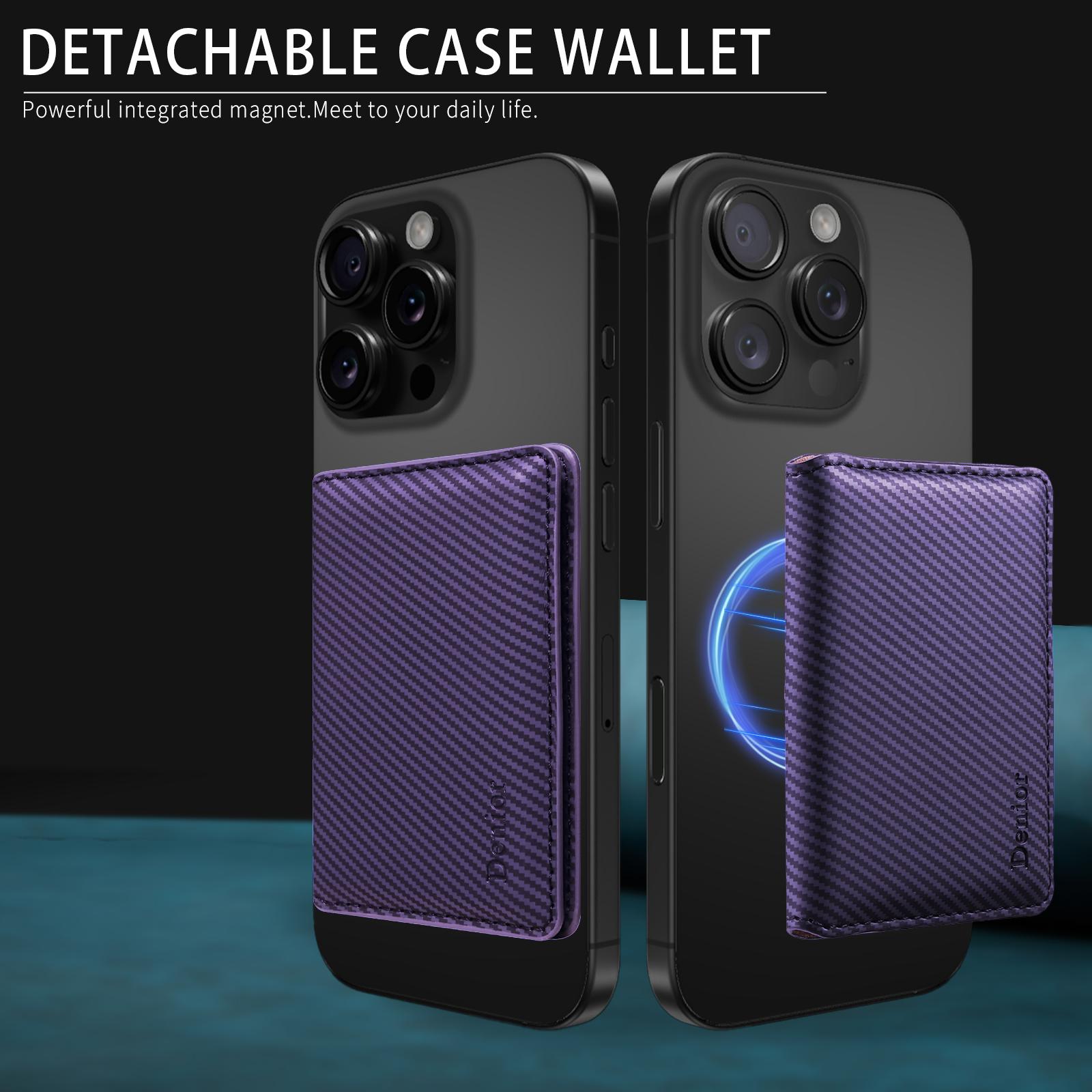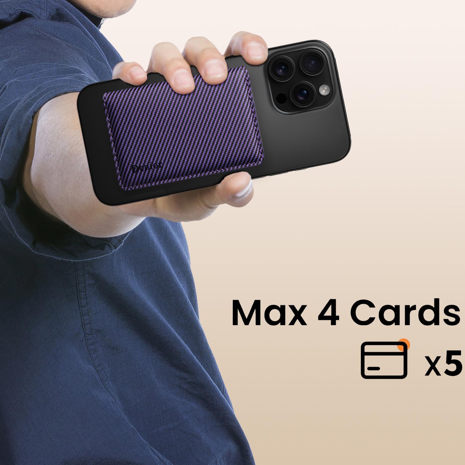 Denior PU Faux Leather Carbon Fiber Pattern N52 Magnetic RFID Blocking Card Holder | PU | Holds 3 Cards - Purple