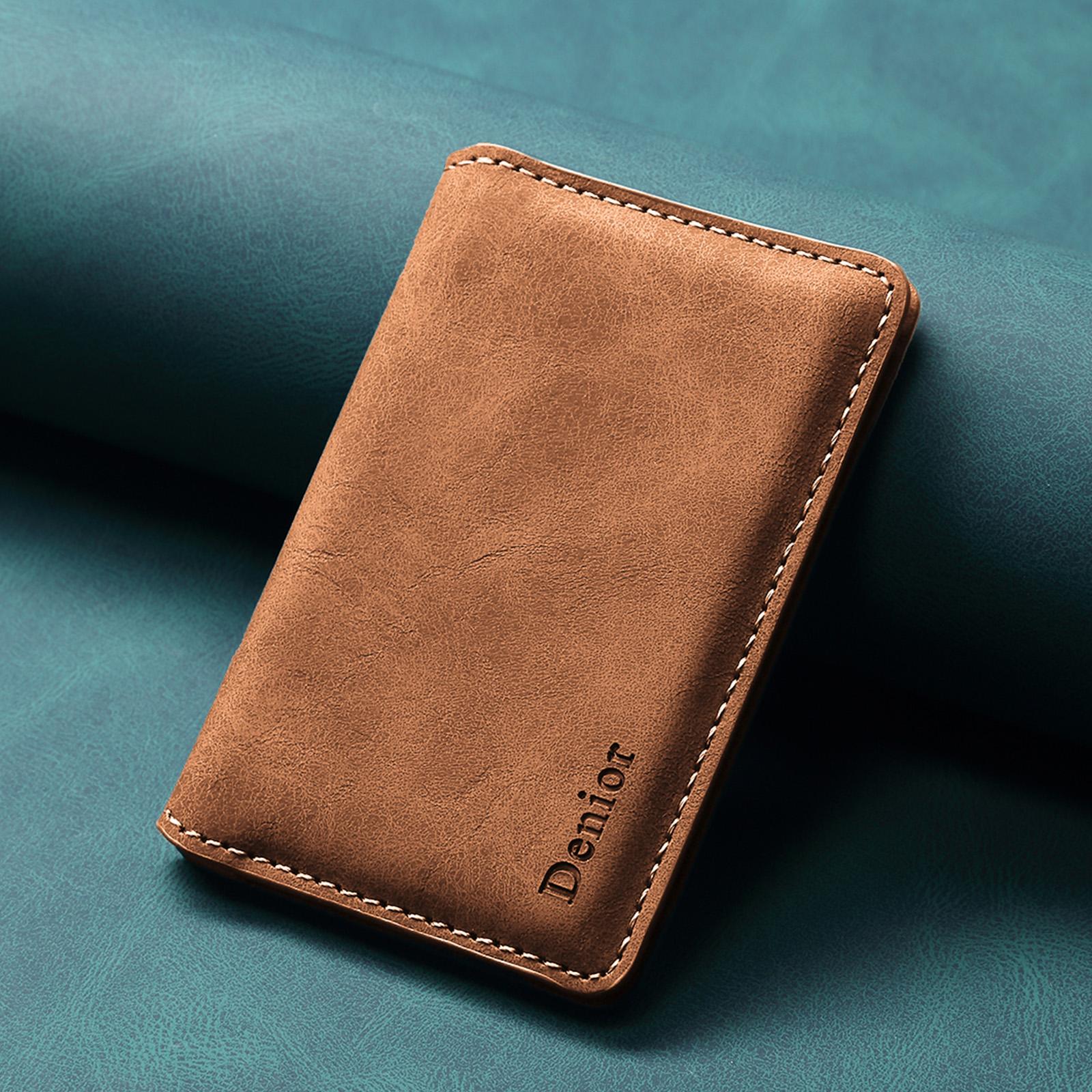 Denior PU Faux Leather Retro Grain N52 Magnetic RFID Blocking Side-Opening Card Holder | PU | Holds 3 Cards - Brown