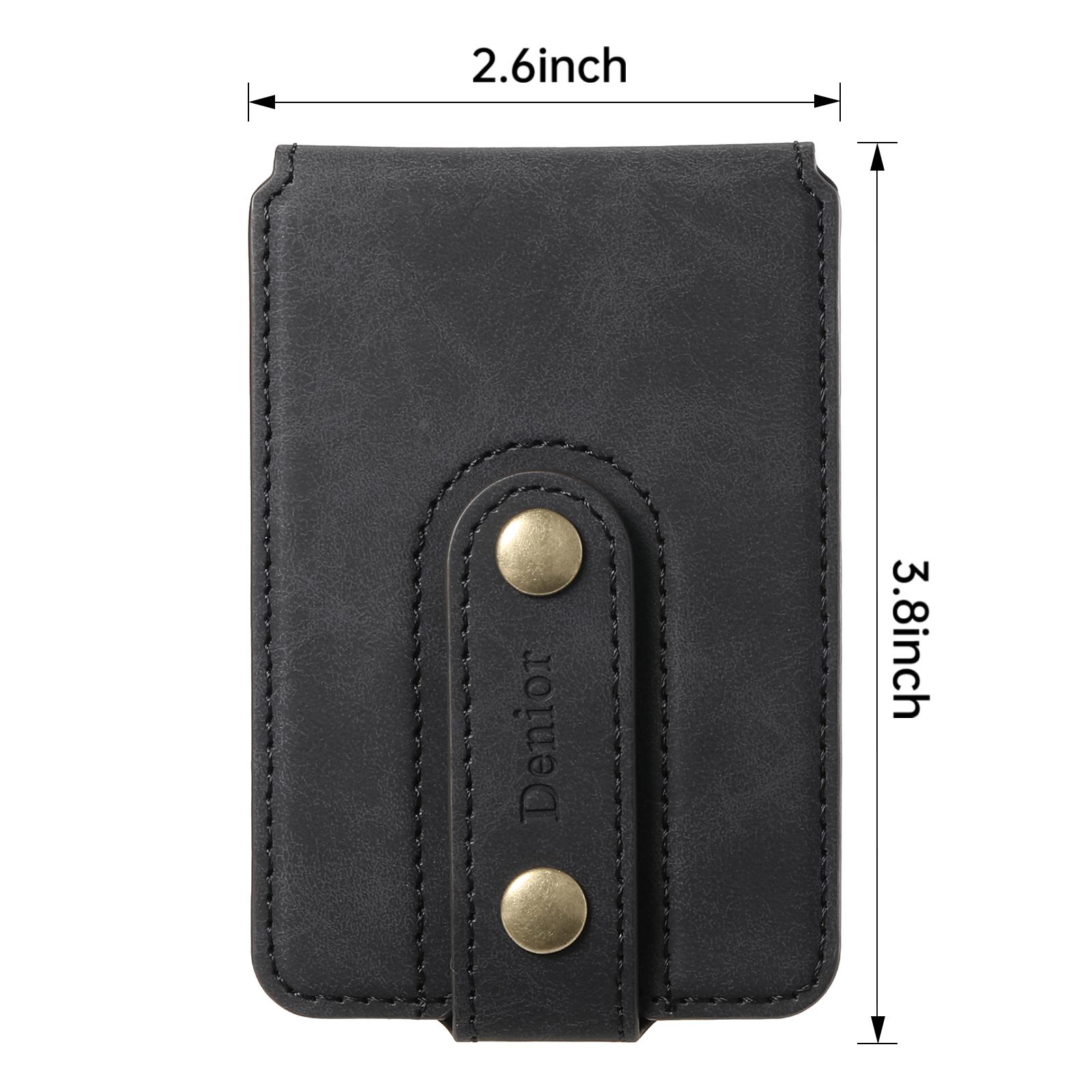 Denior PU Faux Leather Retro Pattern N52 Magnetic Top-Bottom Opening Button Card Holder | PU | Holds 3 Cards - Black