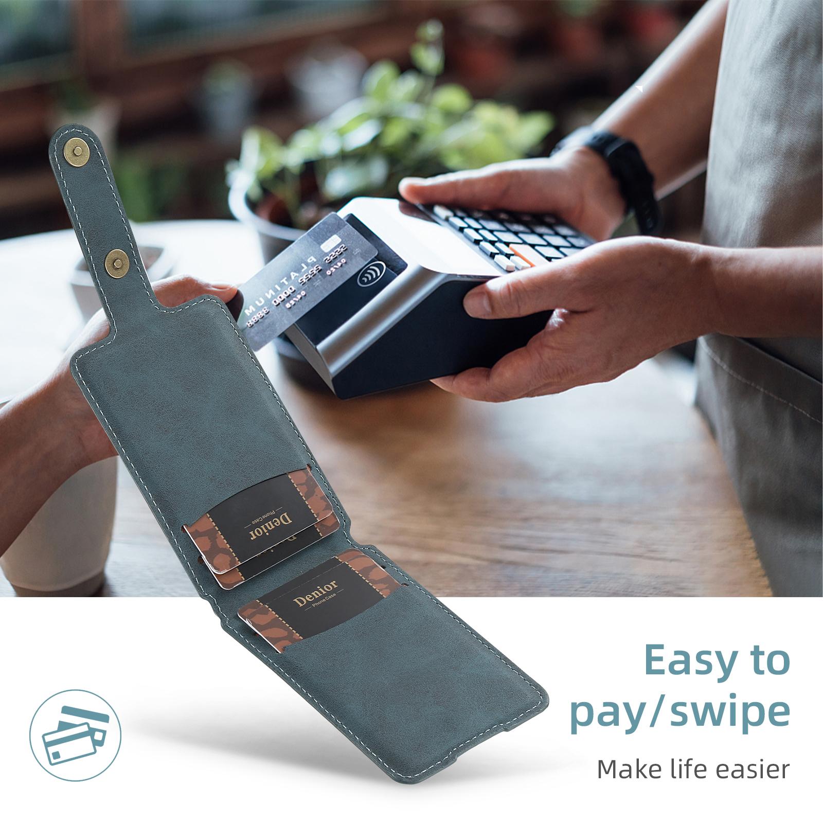 Denior PU Faux Leather Retro Pattern N52 Magnetic Top-Bottom Opening Button Card Holder | PU | Holds 3 Cards - Blue