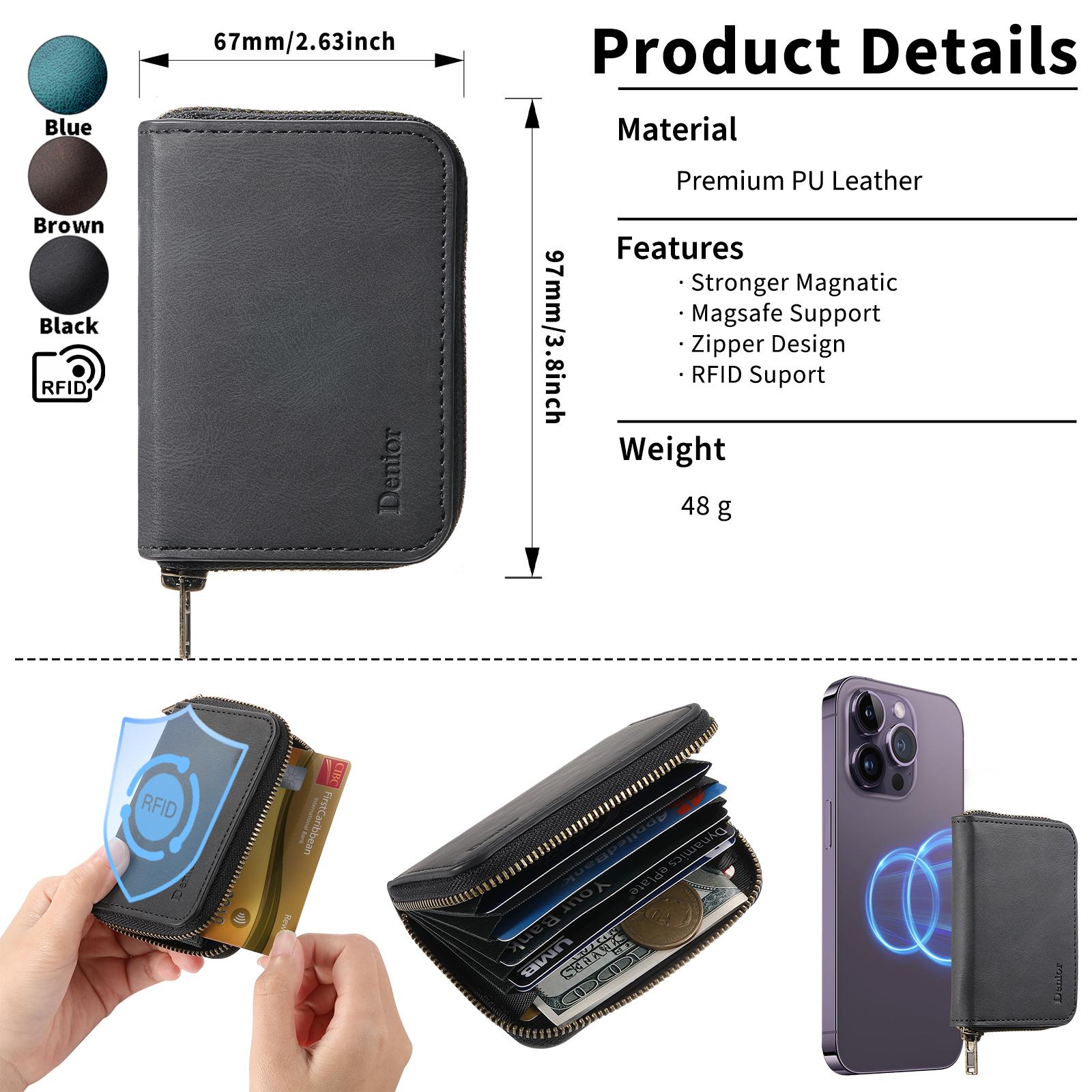 Denior PU Skin-Feel Material N52 Magnetic RFID Blocking Zipper Card Holder | PU | Holds 5 Cards - Black