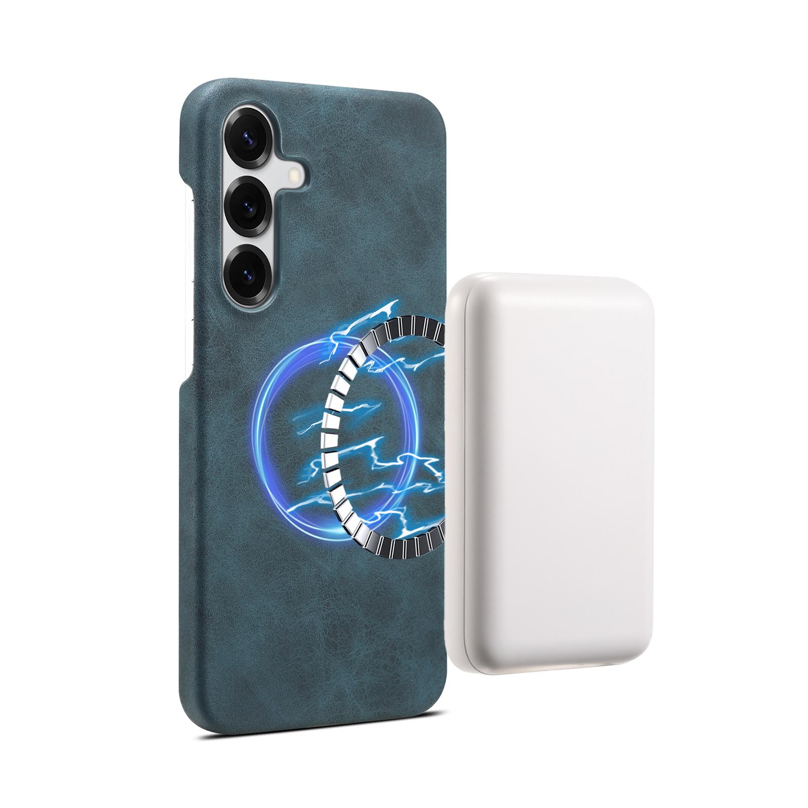 Denior Retro Faux Leather Texture Case for Samsung Galaxy S25 | Built-in N52 Magnet & MagSafe Wireless Charging Compatible | PU Faux Leather | Fingerprint-Resistant PC Hard Case - Blue