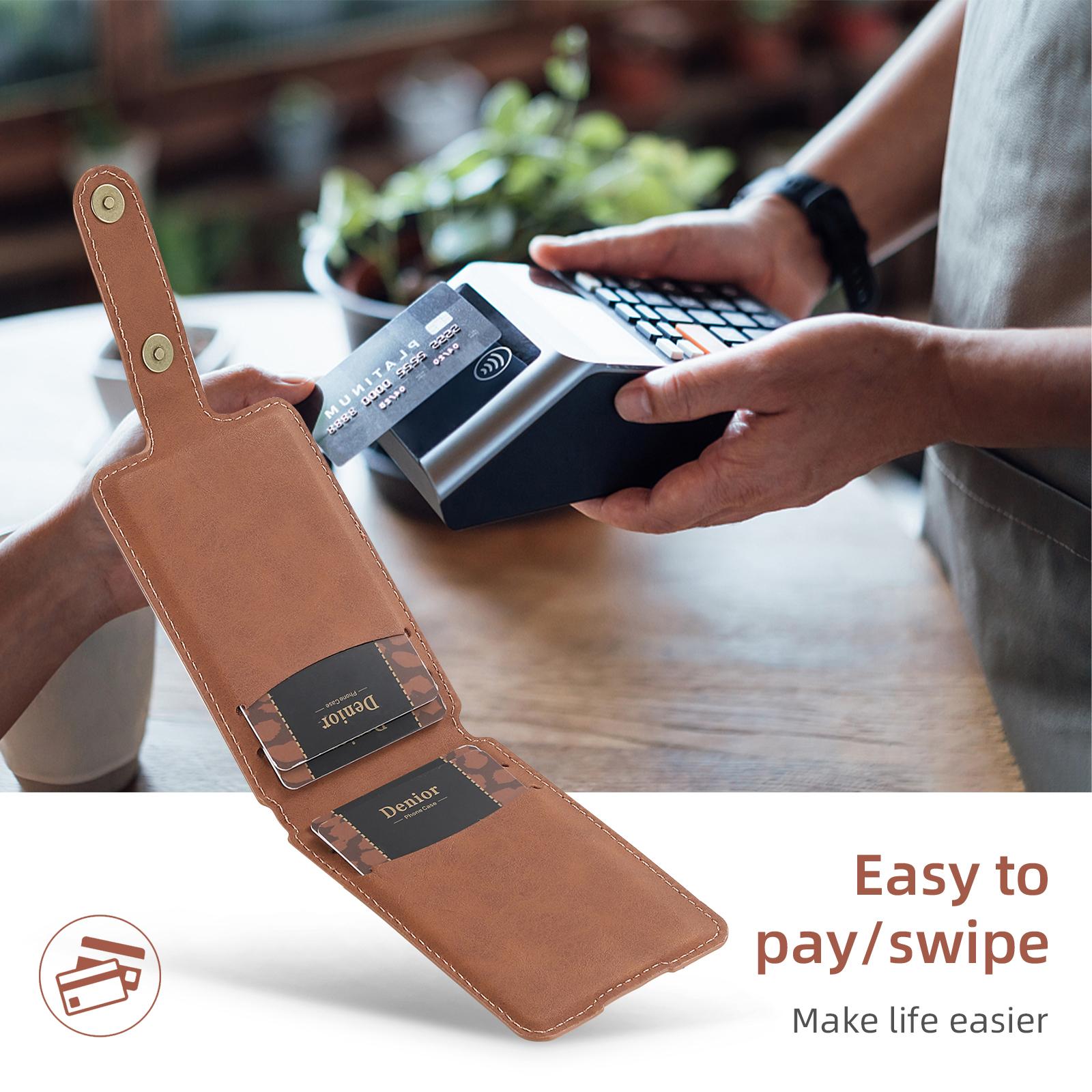 Denior PU Faux Leather Retro Pattern N52 Magnetic Top-Bottom Opening Button Card Holder | PU | Holds 3 Cards - Brown