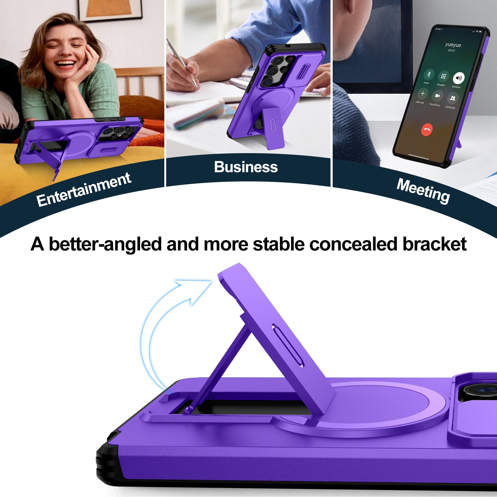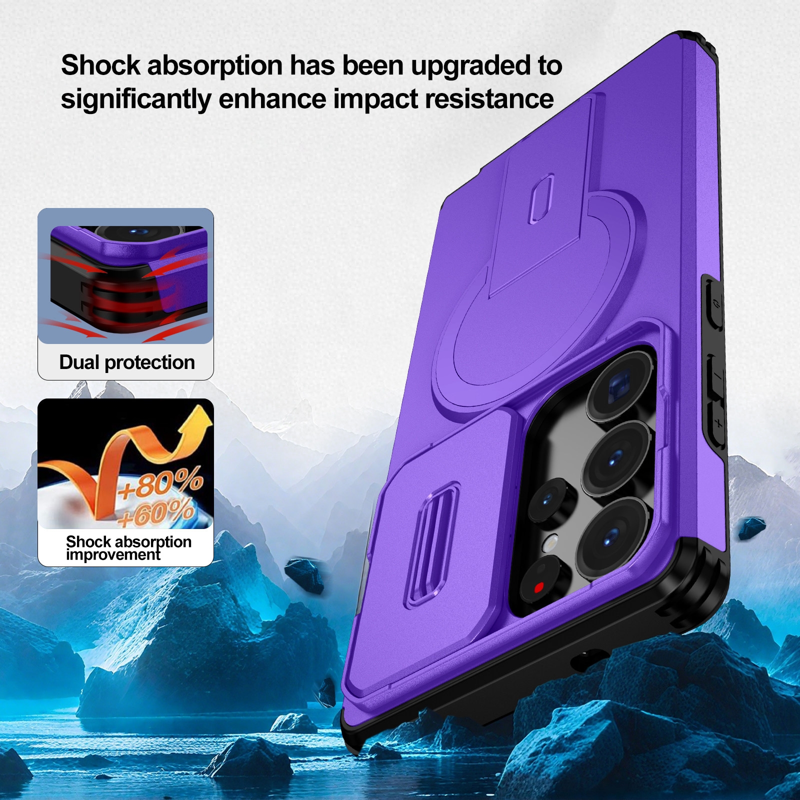 S26 Hidden Kickstand Armor Design Protective Case, Purple