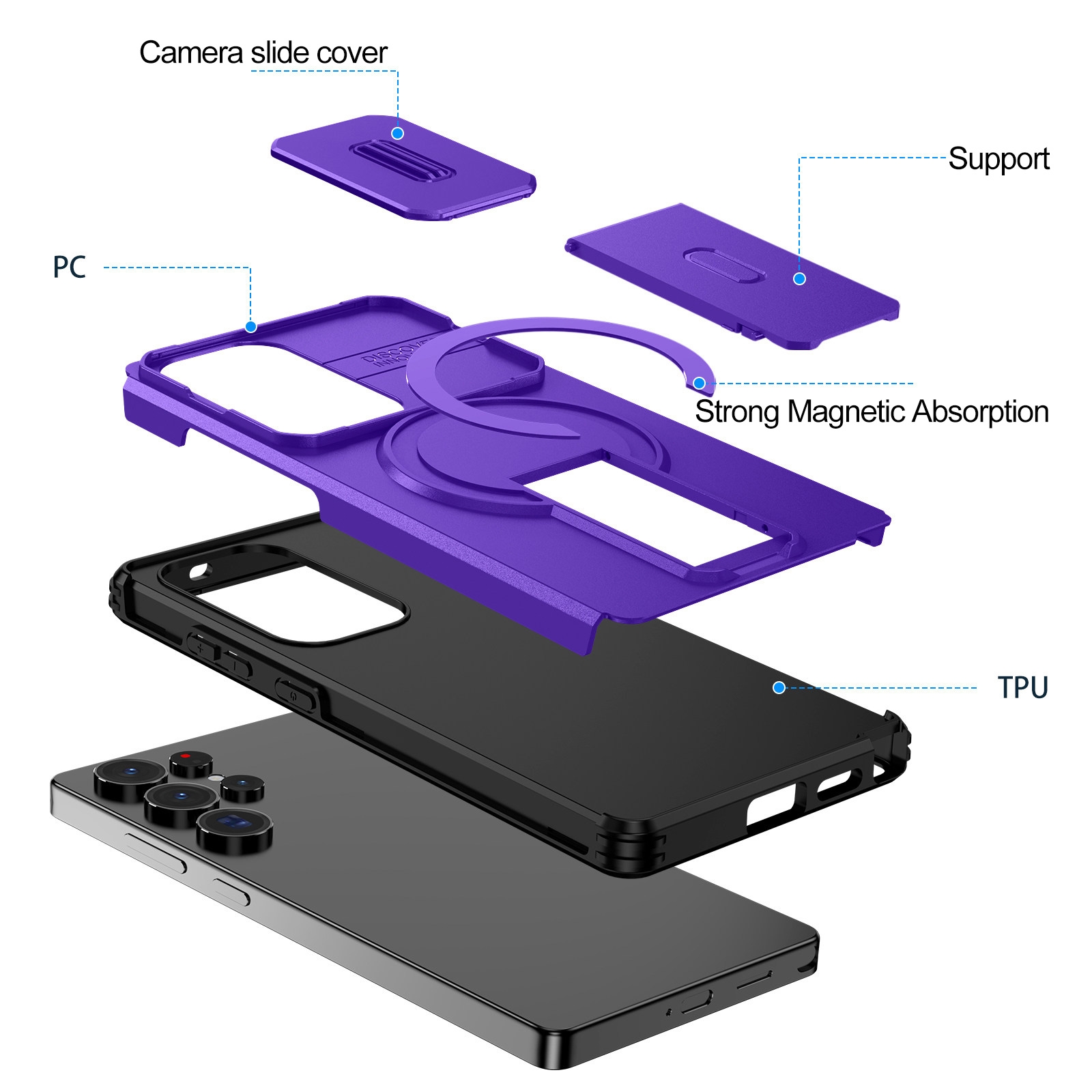 S26 Ultra Hidden Kickstand Armor Design Protective Case, Purple