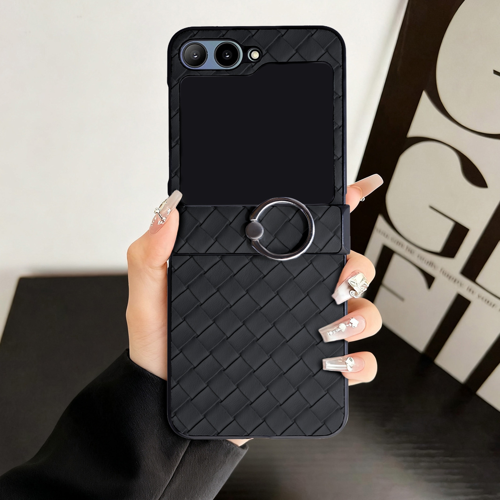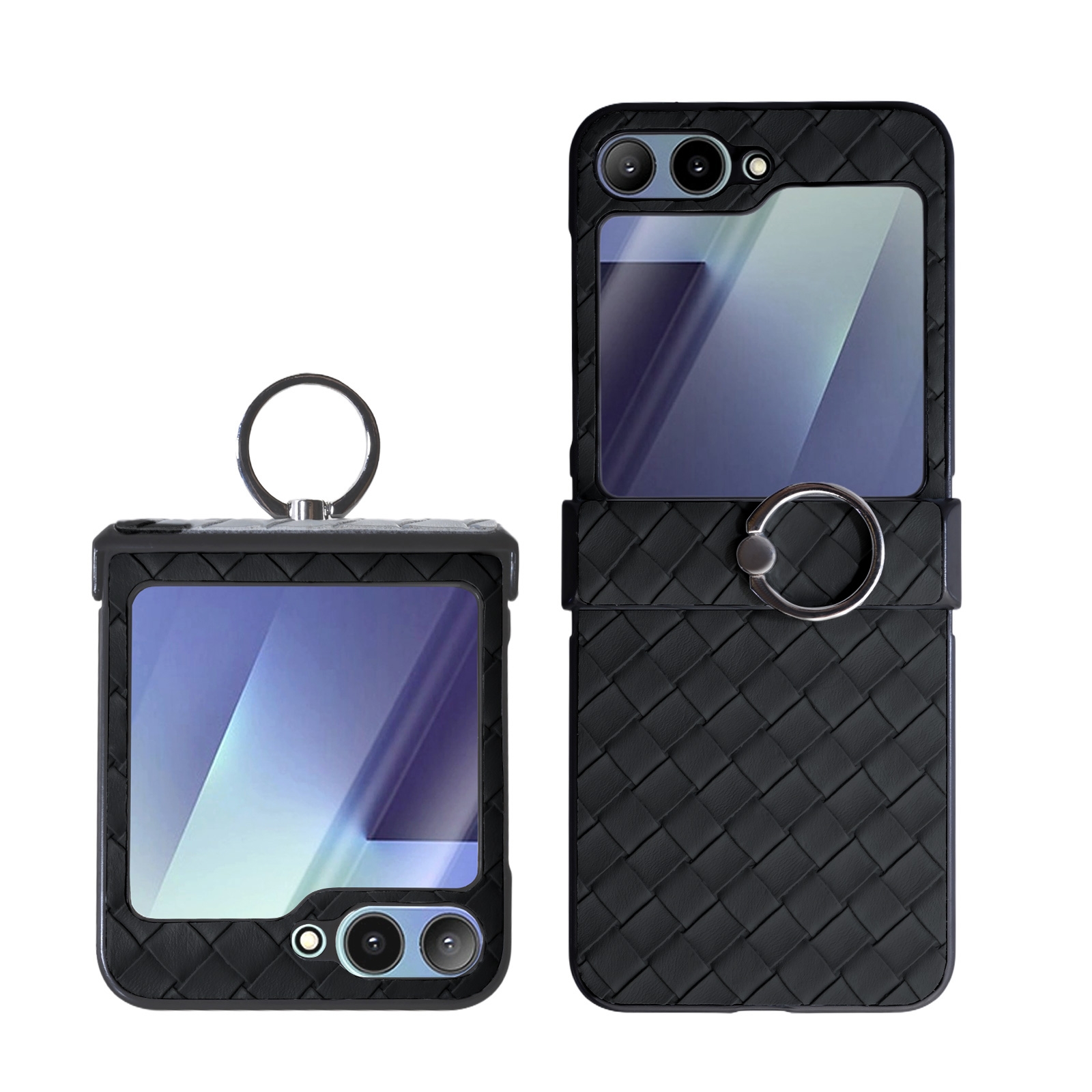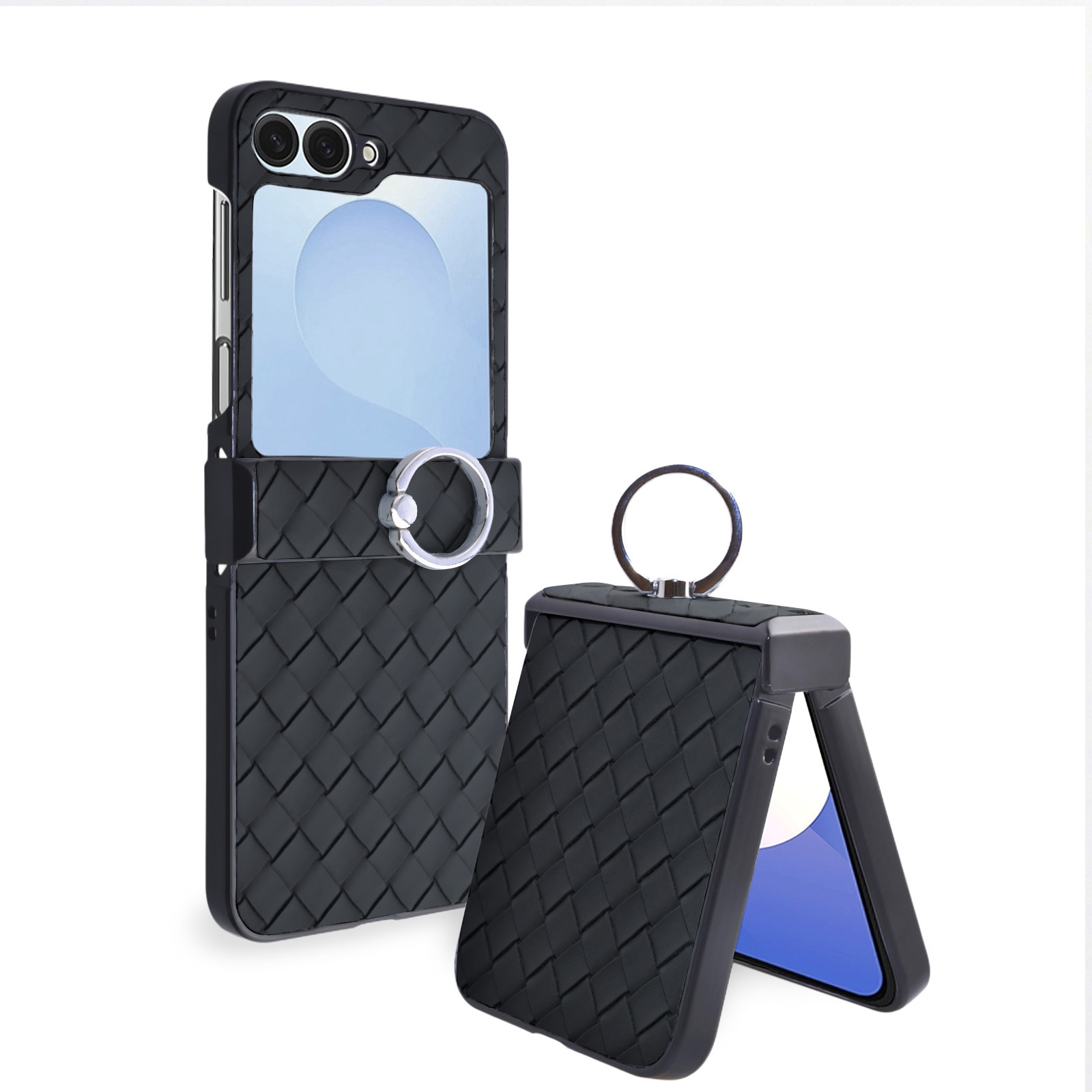 Samsung Z Flip 6 Case – Black Plaid Folding Phone Cover with Ring Holder