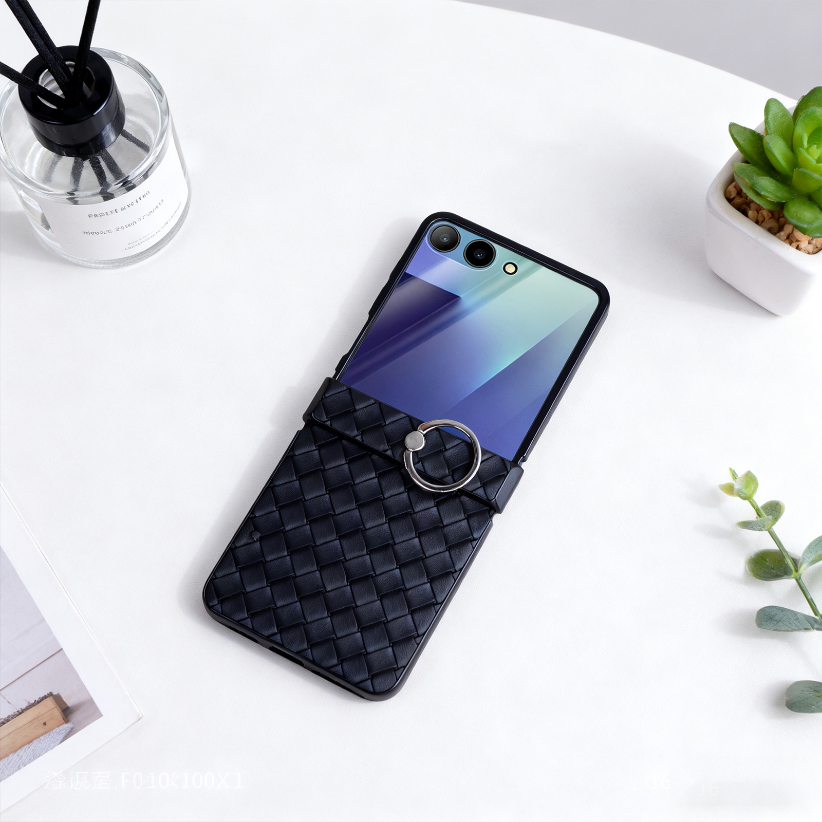 Samsung Z Flip 7 Case – Black Plaid Folding Phone Cover with Ring Holder