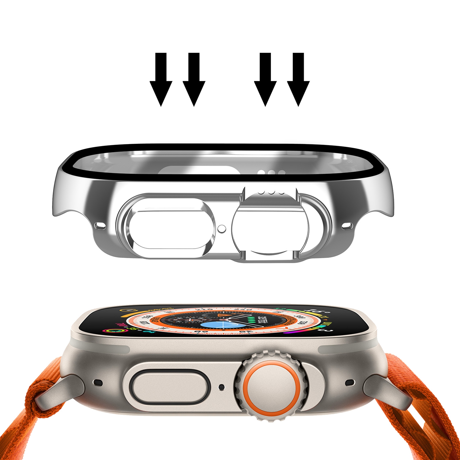 Scratch-Resistant Electroplated PC Case with Tempered Glass for iWatch Ultra 1/2/3 (49mm) , Silver