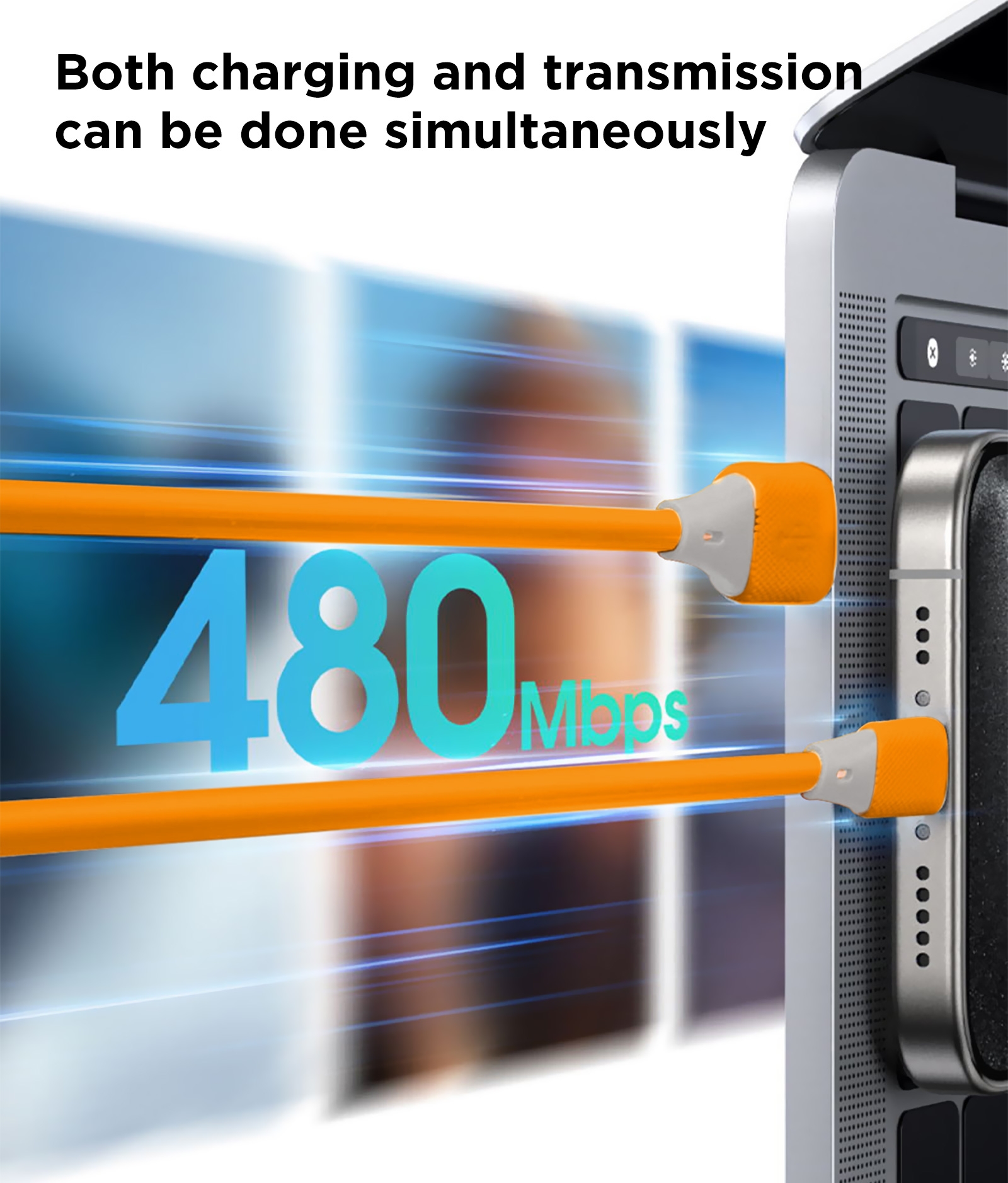 1 Meter 60W Fast Charging USB-C to USB-C Cable for iPhone, Luxury Orange (SIM Eject Pin Included)