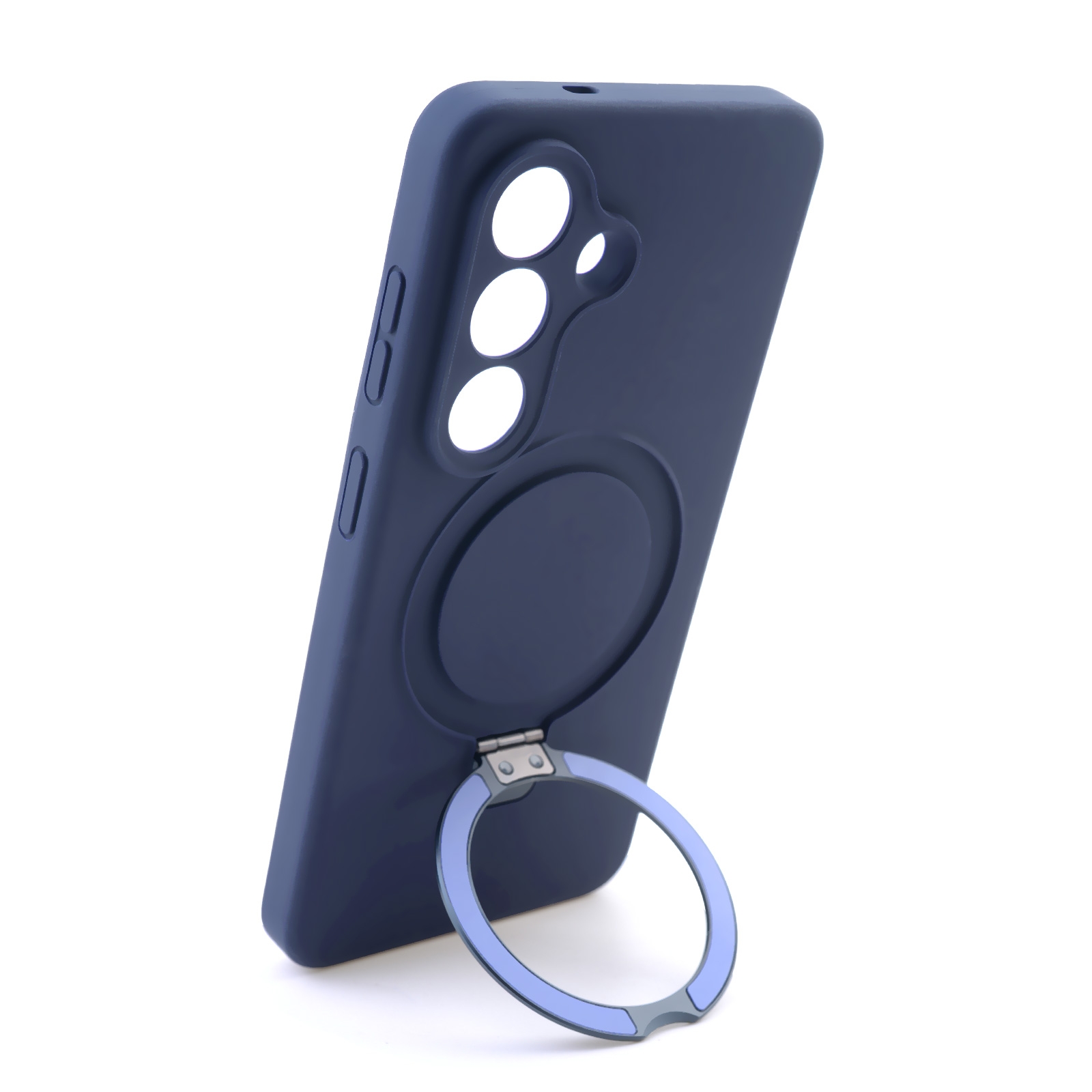 Silicone Magnetic Phone Case for S26 Plus with Foldable Ring Stand, Dark Blue