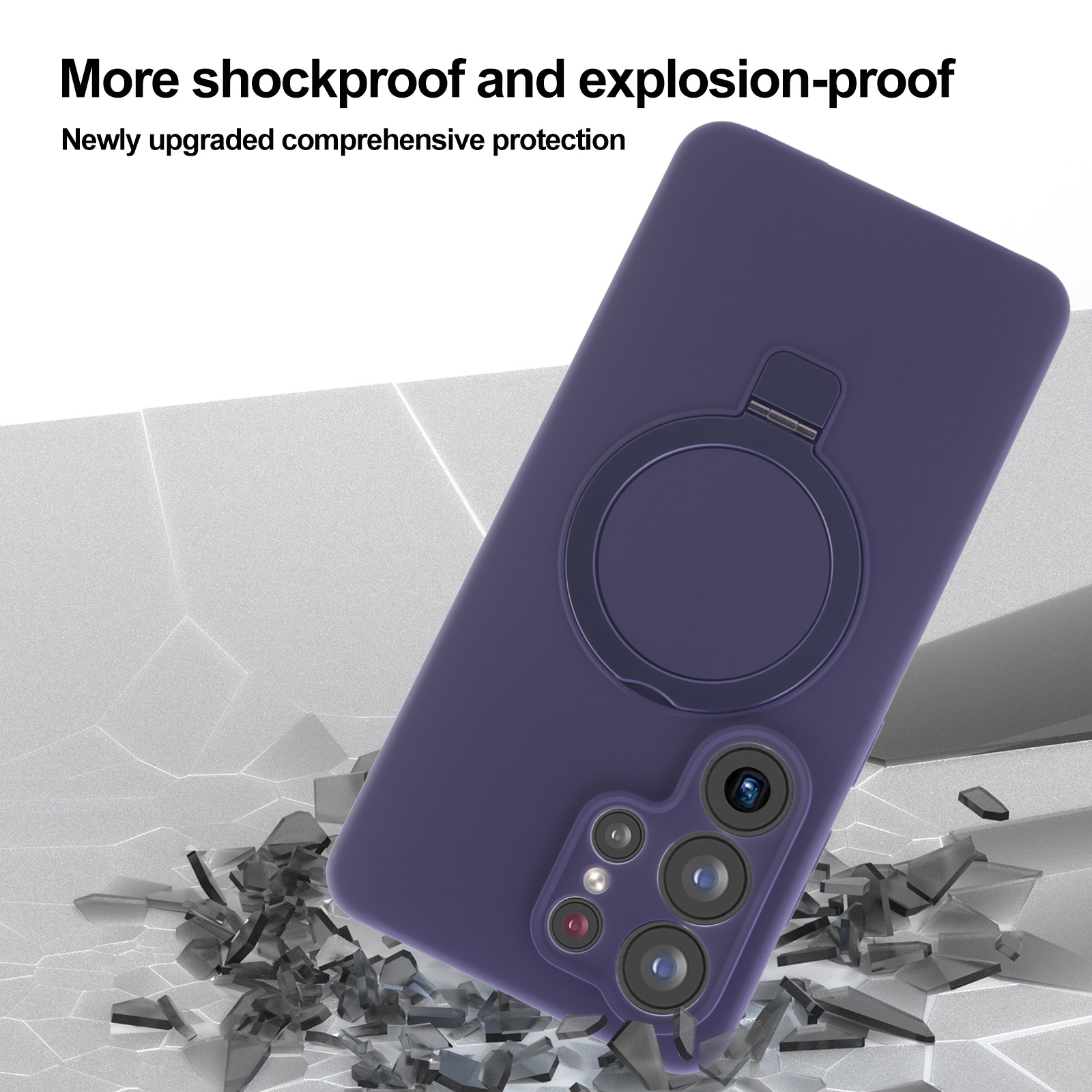 Silicone Magnetic Phone Case for S26 Ultra with Foldable Ring Stand, Black
