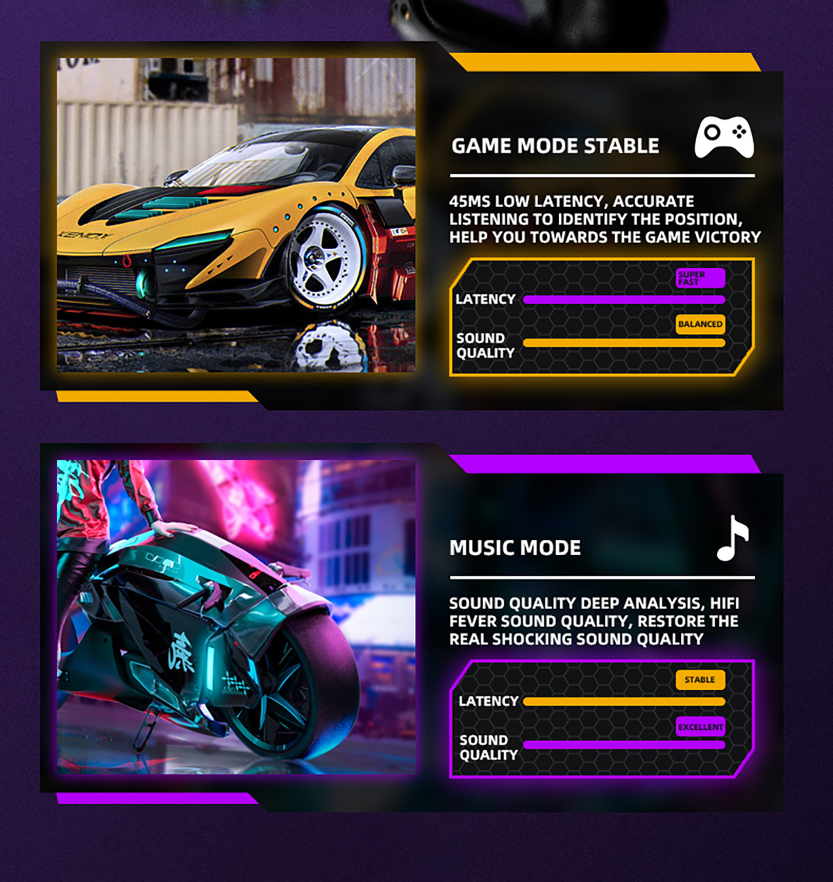 Low Latency Bluetooth 5.3 Earphones with Mic and Charging Box - Black