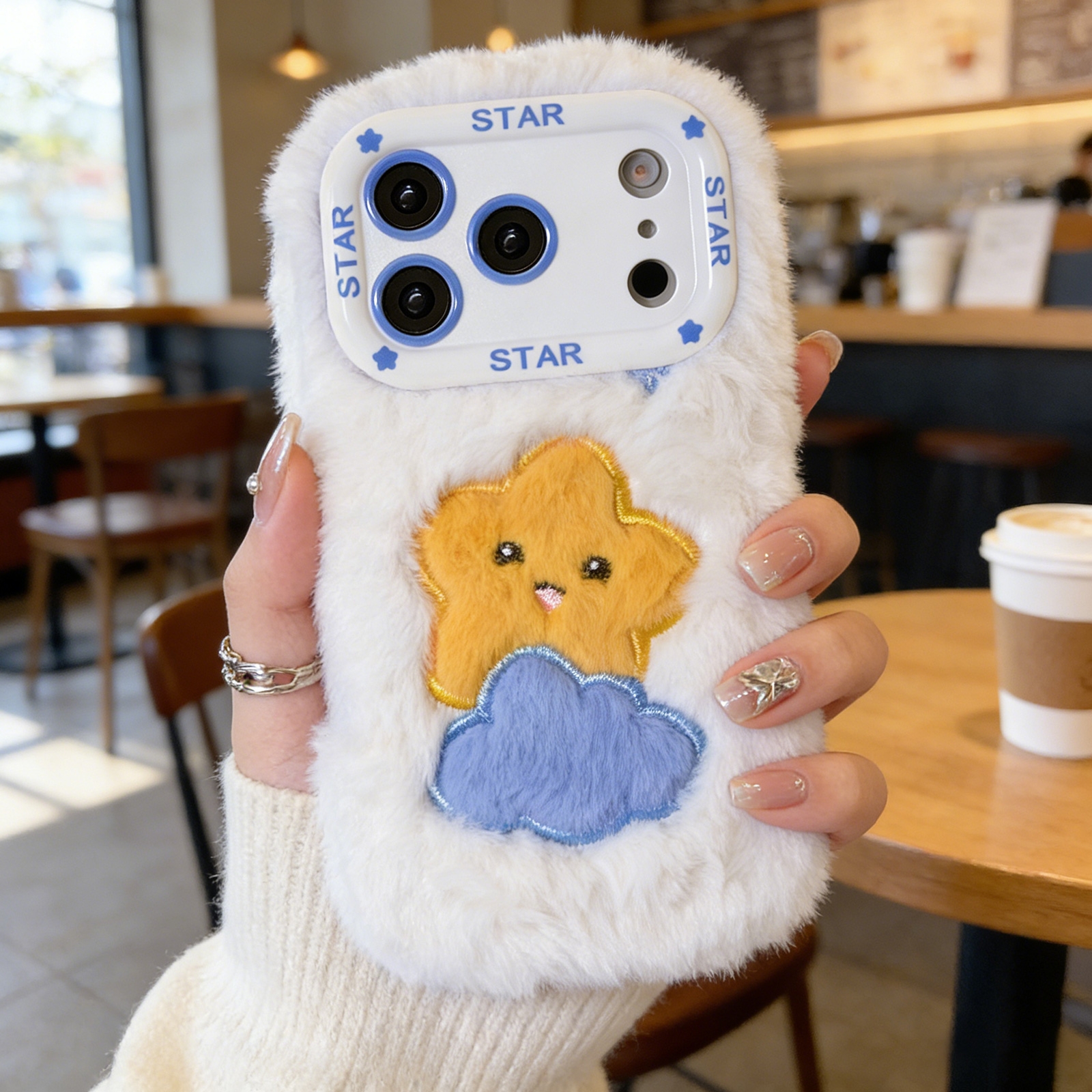 White Cloud Star Plush Silicone Phone Case for iPhone 17 Pro – Soft Cute Protective Cover