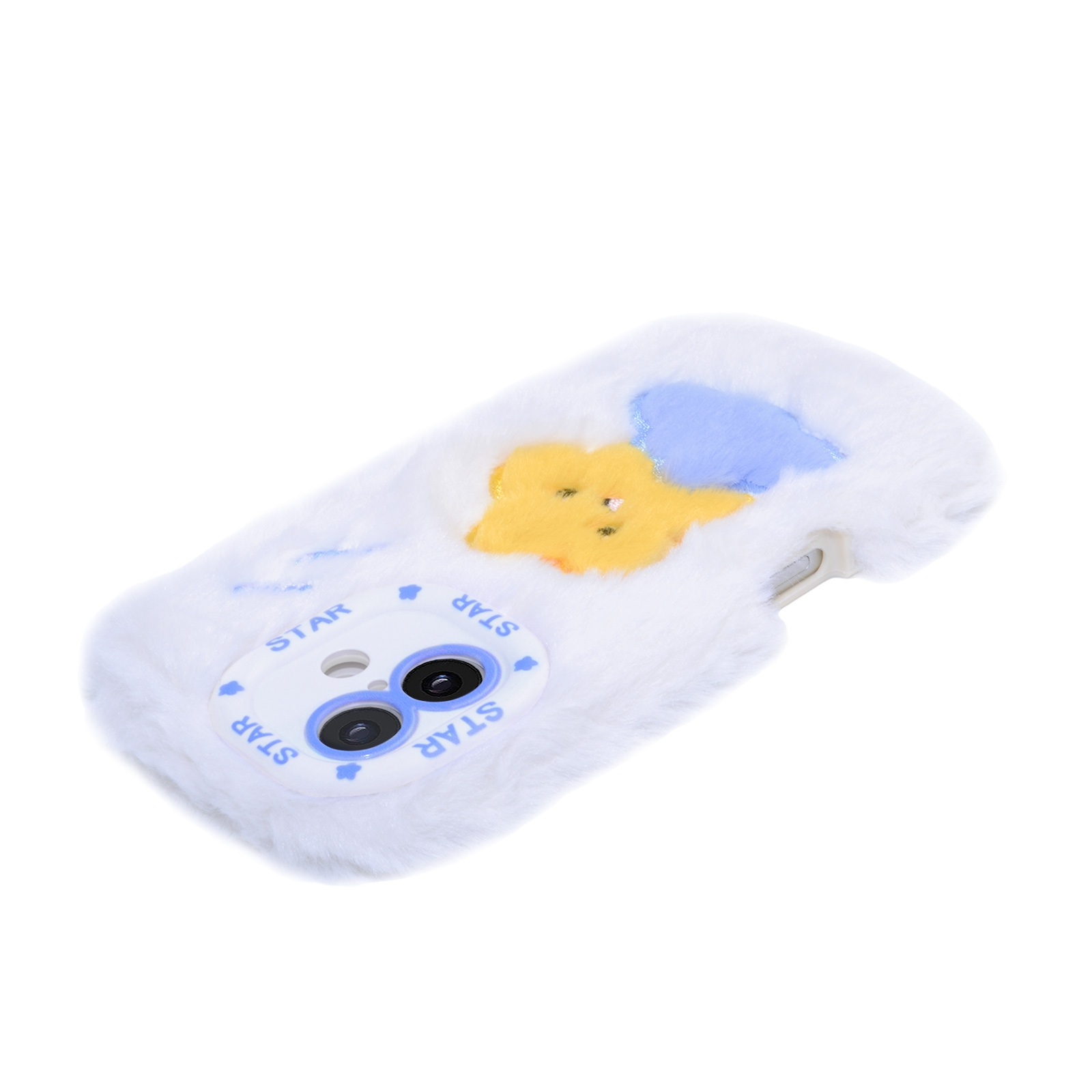 White Cloud Star Plush Silicone Phone Case for iPhone 17 – Soft Cute Protective Cover