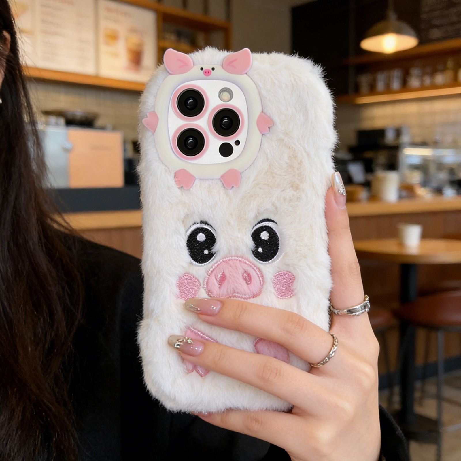 White Pig Plush Silicone Phone Case for iPhone 16 Pro Max – Soft Cute Protective Cover