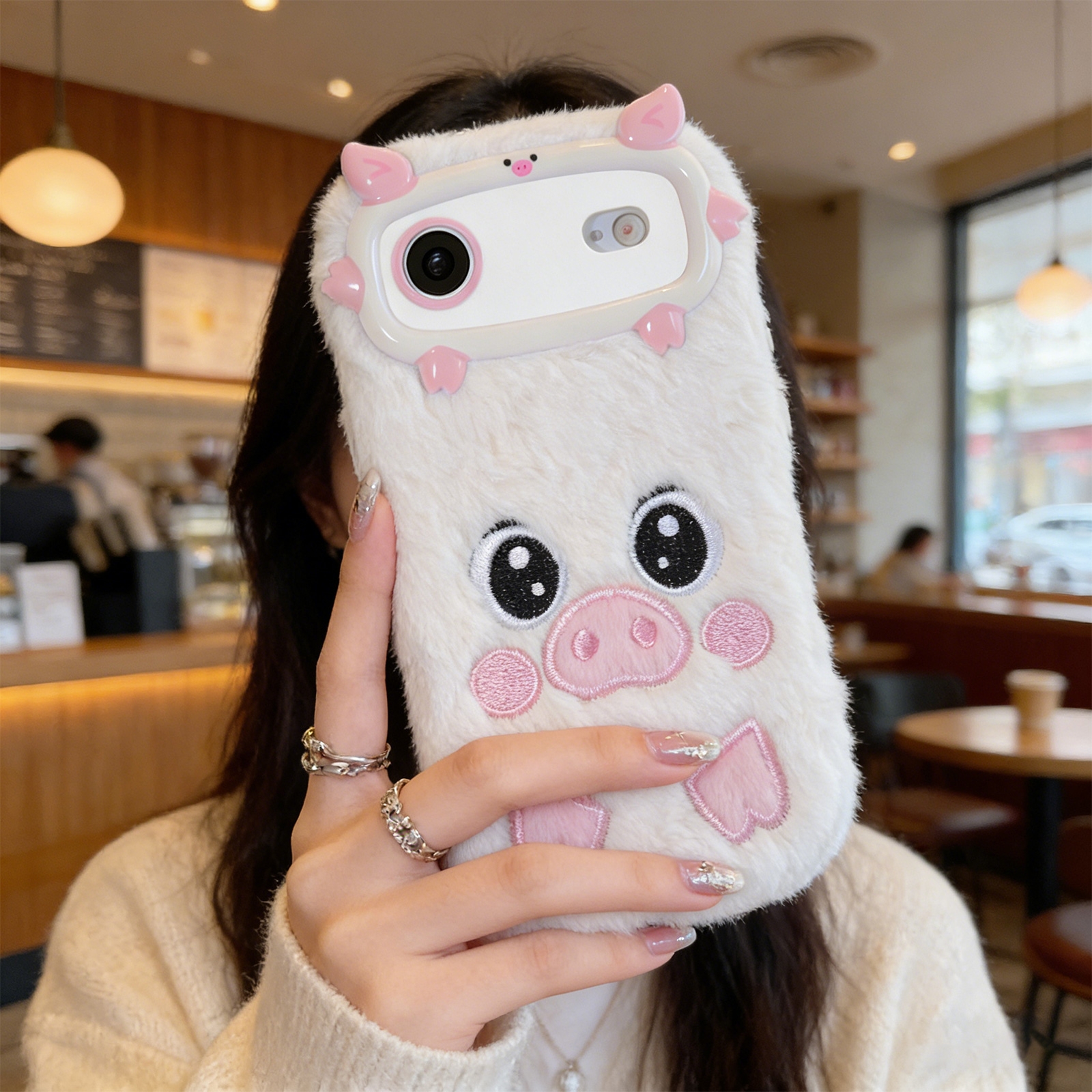 White Pig Plush Silicone Phone Case for iPhone Air – Soft Cute Protective Cover