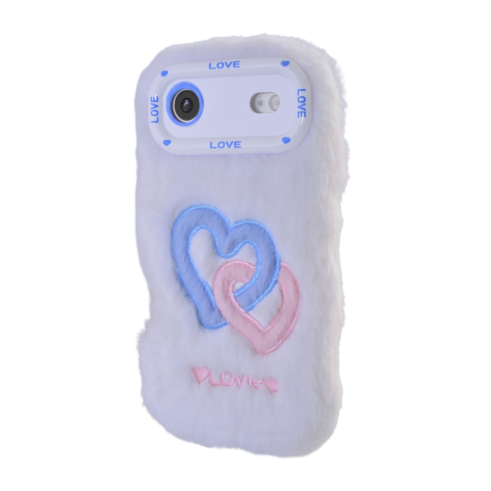 White Plush Silicone Double Heart Phone Case for iPhone Air – Soft Furry Cute Protective Cover