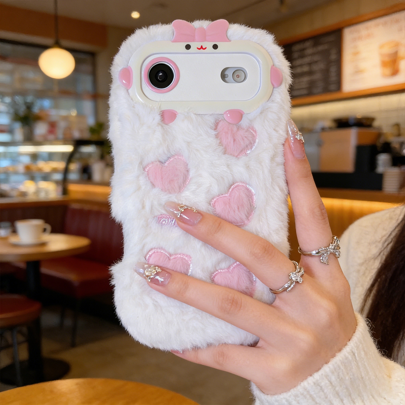 White Plush Silicone Double Heart Phone Case for iPhone Air – Soft Furry Cute Protective Cover