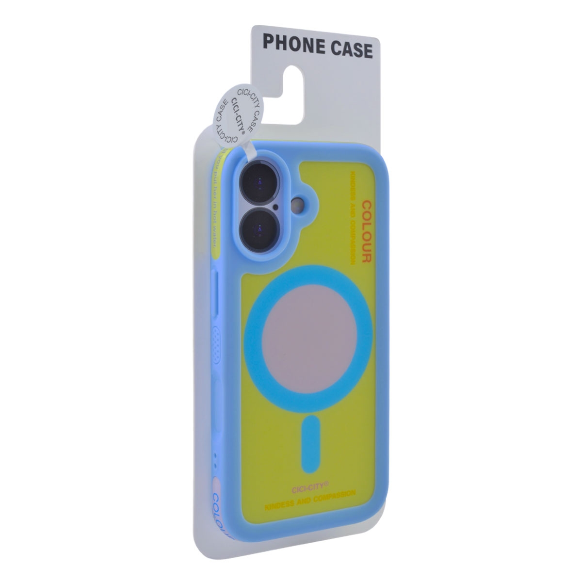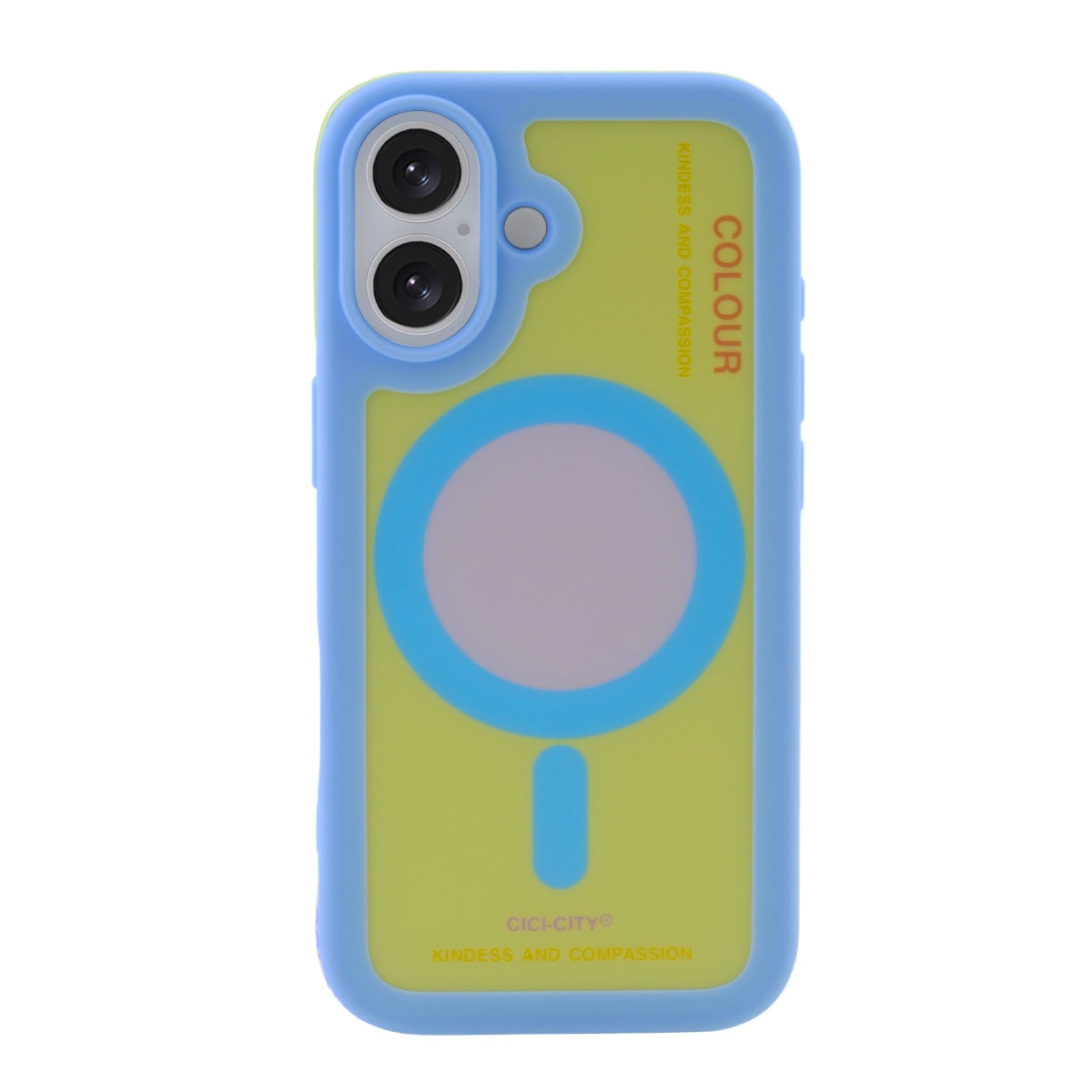 Y2K Dopamine Color Block Magnetic Case for iPhone 17 Max, Light Blue and Yellow