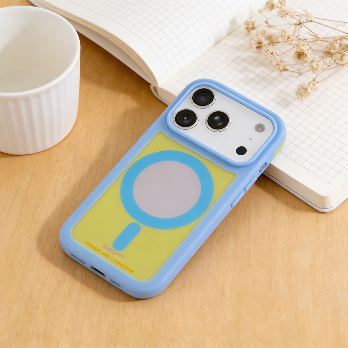 Y2K Dopamine Color Block Magnetic Case for iPhone 17 Pro, Light Blue and Yellow