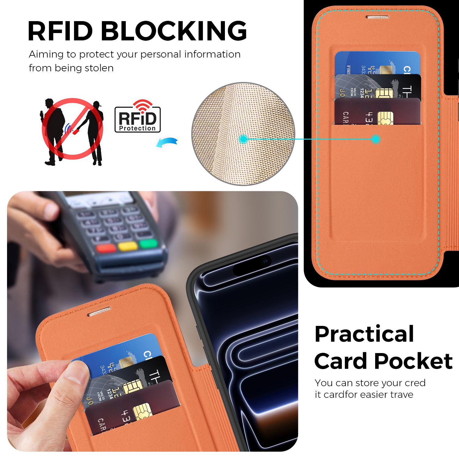 360° Rotating Stand iPhone 17 Pro Case - Magnetic Wireless Charging PU Cover, Orange