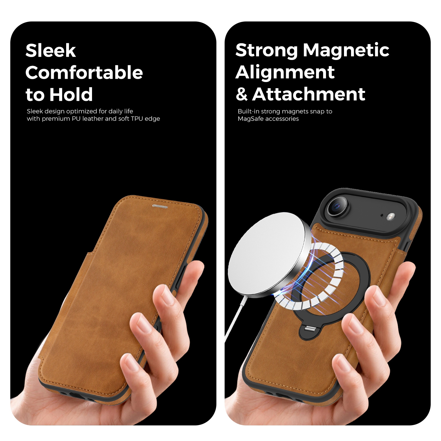 360° Rotating Stand iPhone Air Case - Magnetic Wireless Charging PU Cover, Brown
