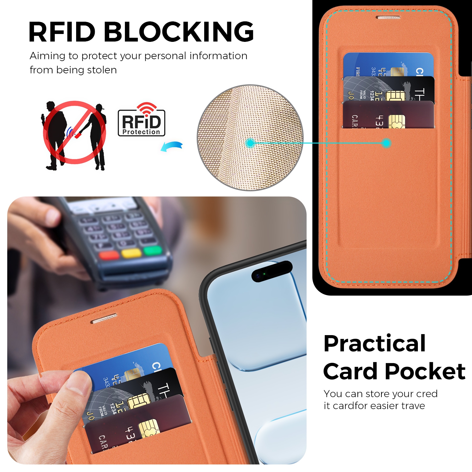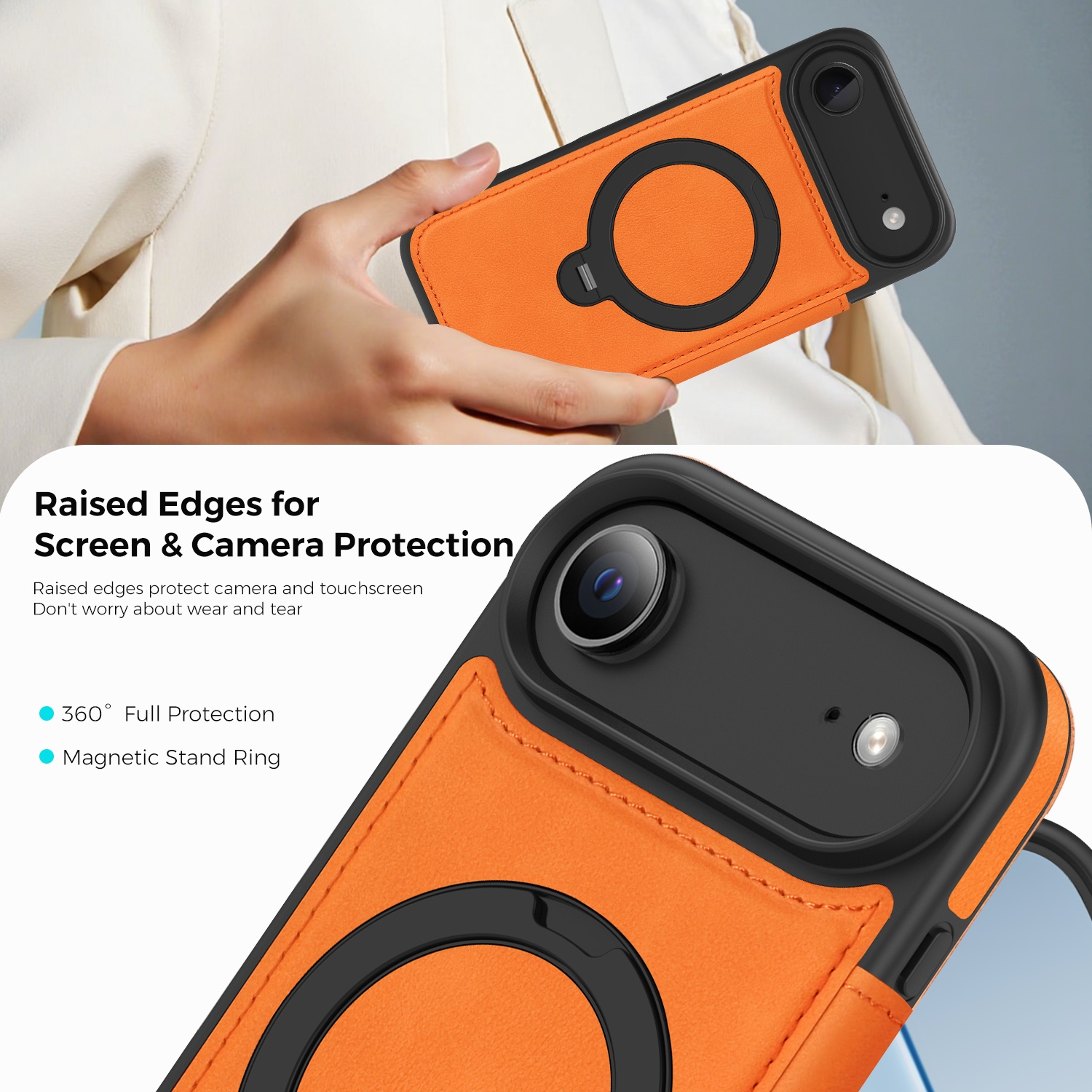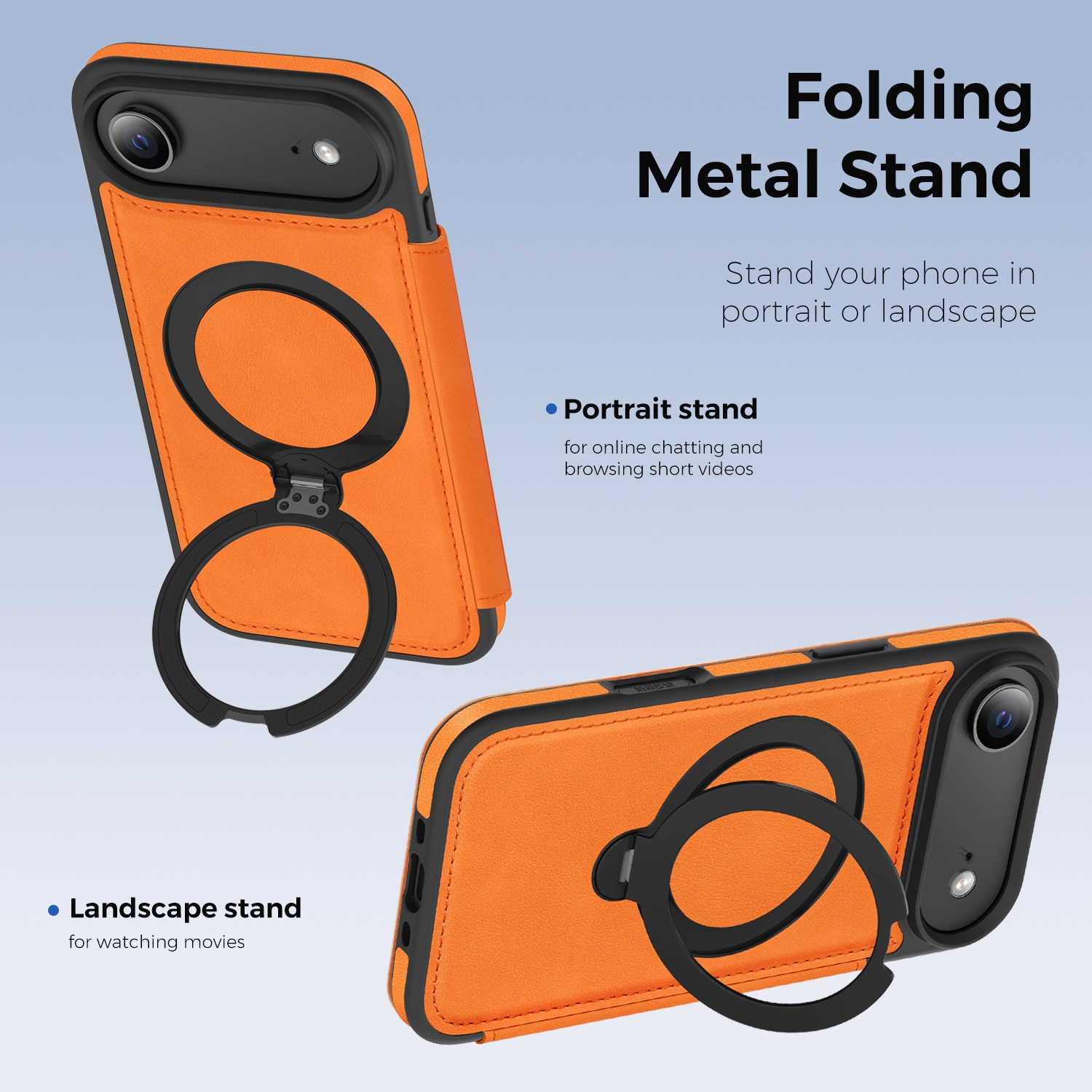 360° Rotating Stand iPhone Air Case - Magnetic Wireless Charging PU Cover, Orange