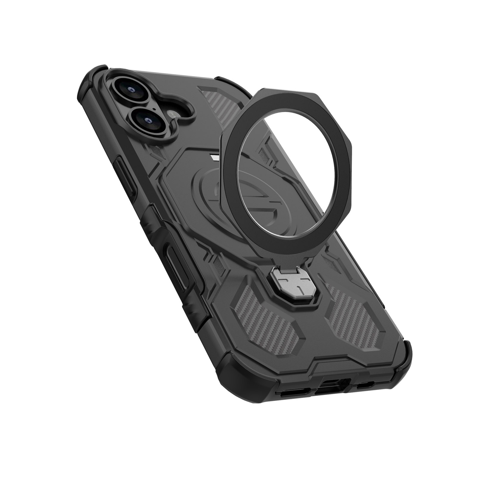 360 Rotation Kickstand Magnetic iPhone 17 Case - Airbag Shockproof Metal Stand, Black