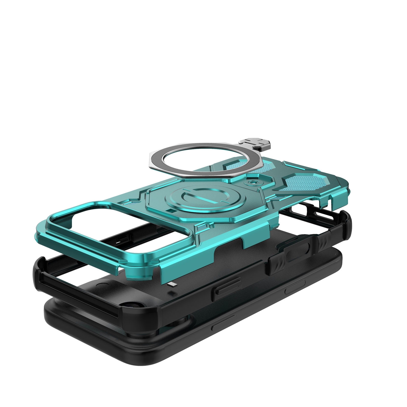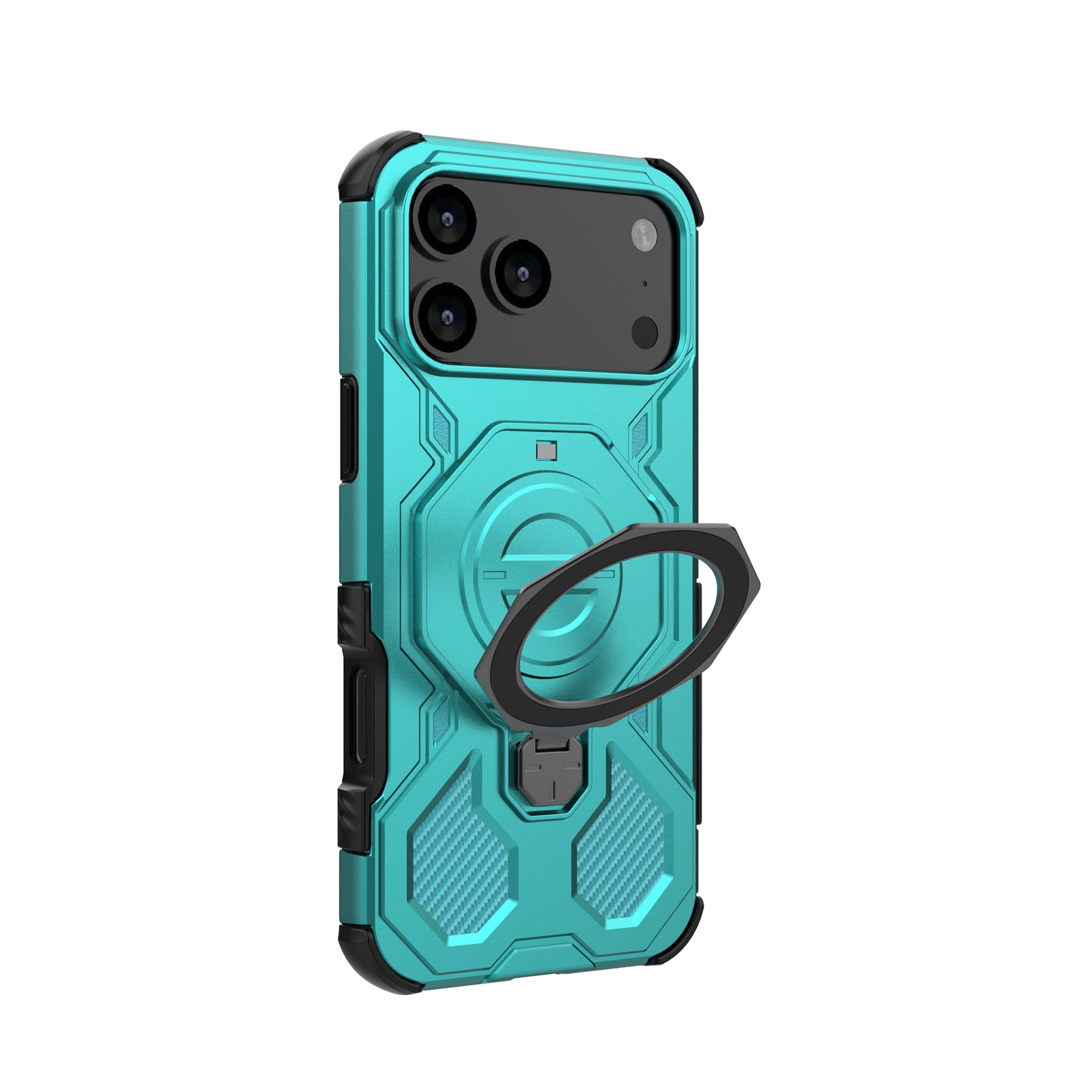 360 Rotation Kickstand Magnetic iPhone 17 Pro Max Case - Airbag Shockproof Metal Stand, Blue