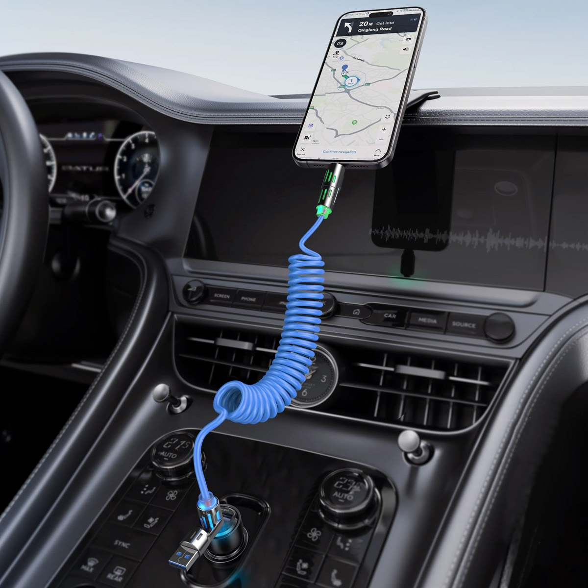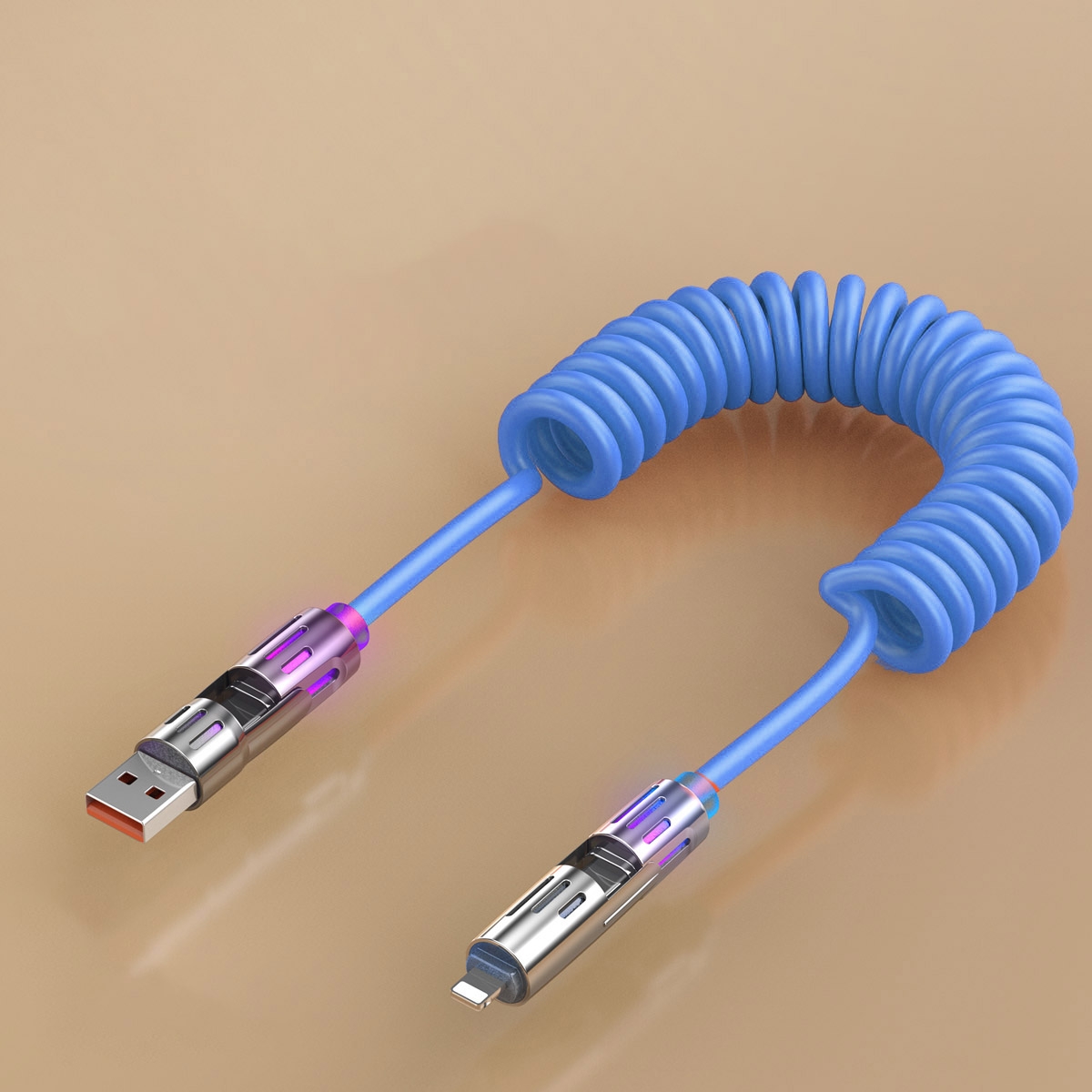 4 in 1 Coiled Lightning Cable, 65W Retractable USB Charger - Blue