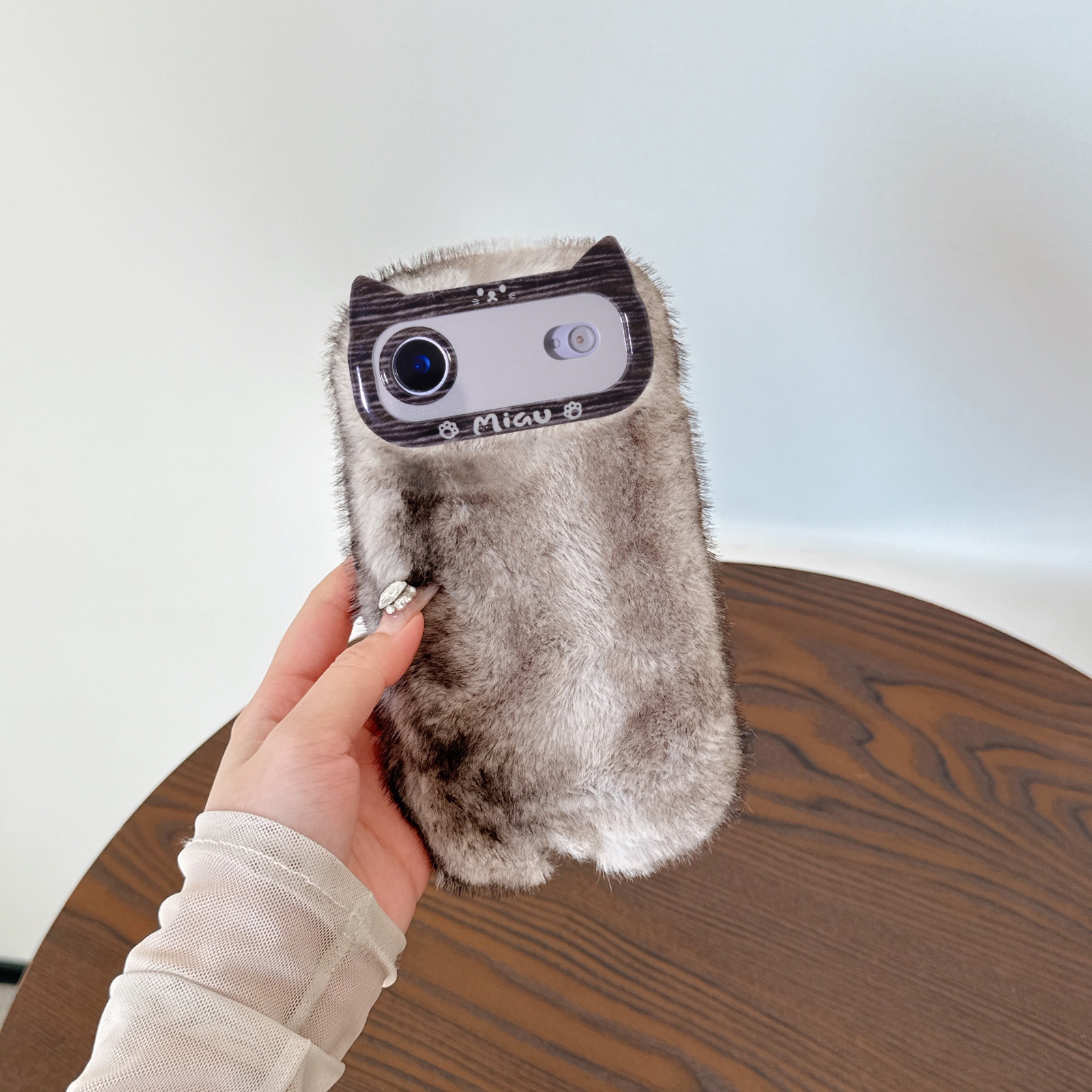 iPhone Air Plush Silicone Leopard Cat Ears Protective Case – Black Soft Furry Cover