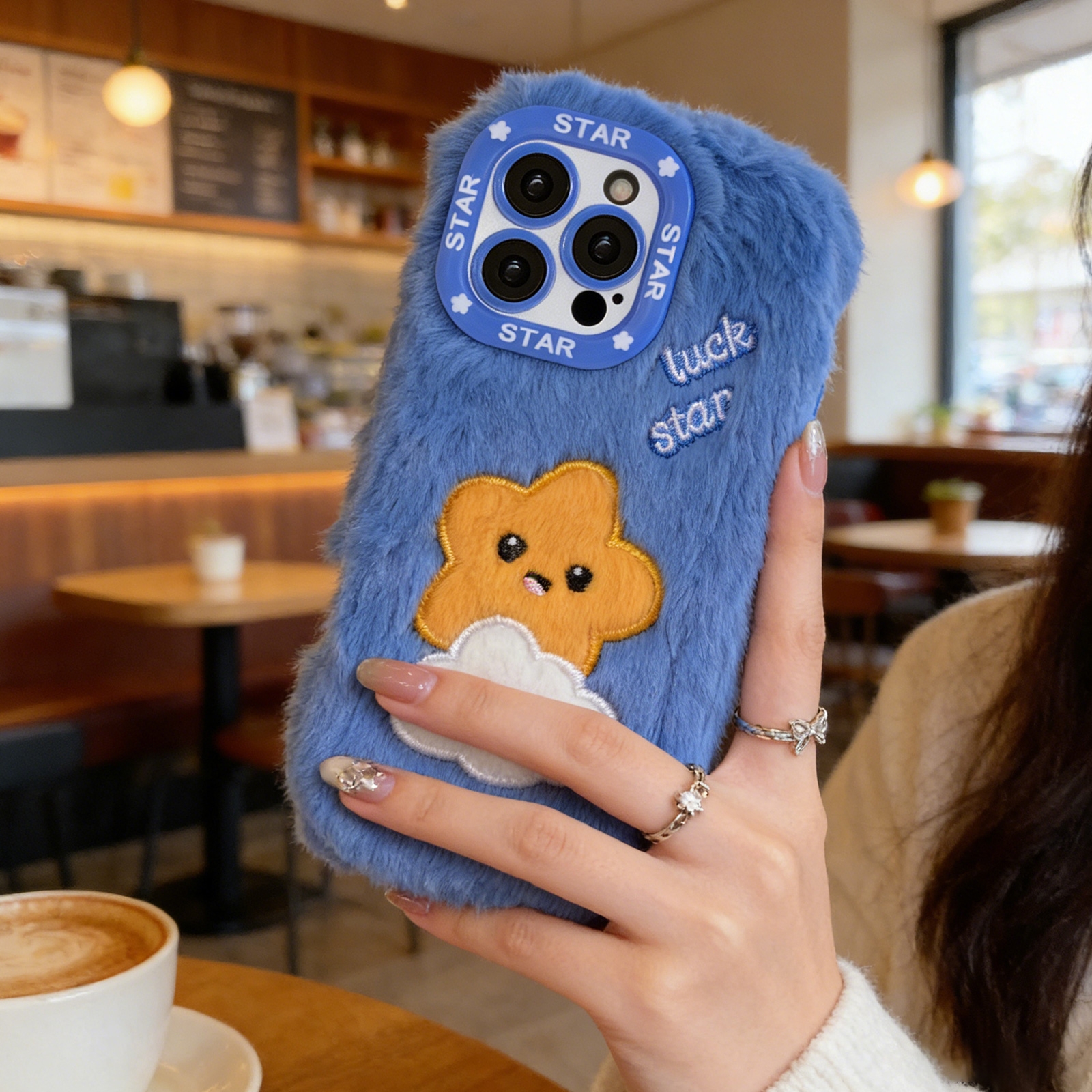 Blue Cloud Star Plush Silicone Phone Case for iPhone 16 Pro Max – Soft Cute Protective Cover
