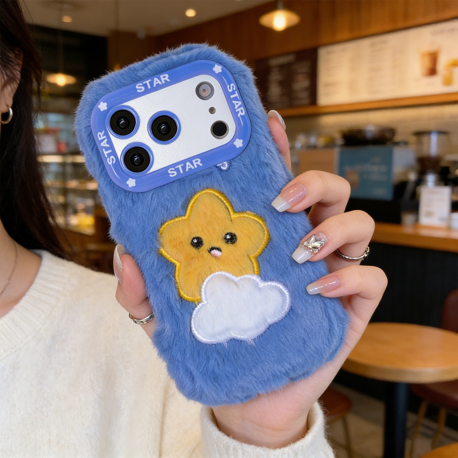 Blue Cloud Star Plush Silicone Phone Case for iPhone 17 Pro Max – Soft Cute Protective Cover