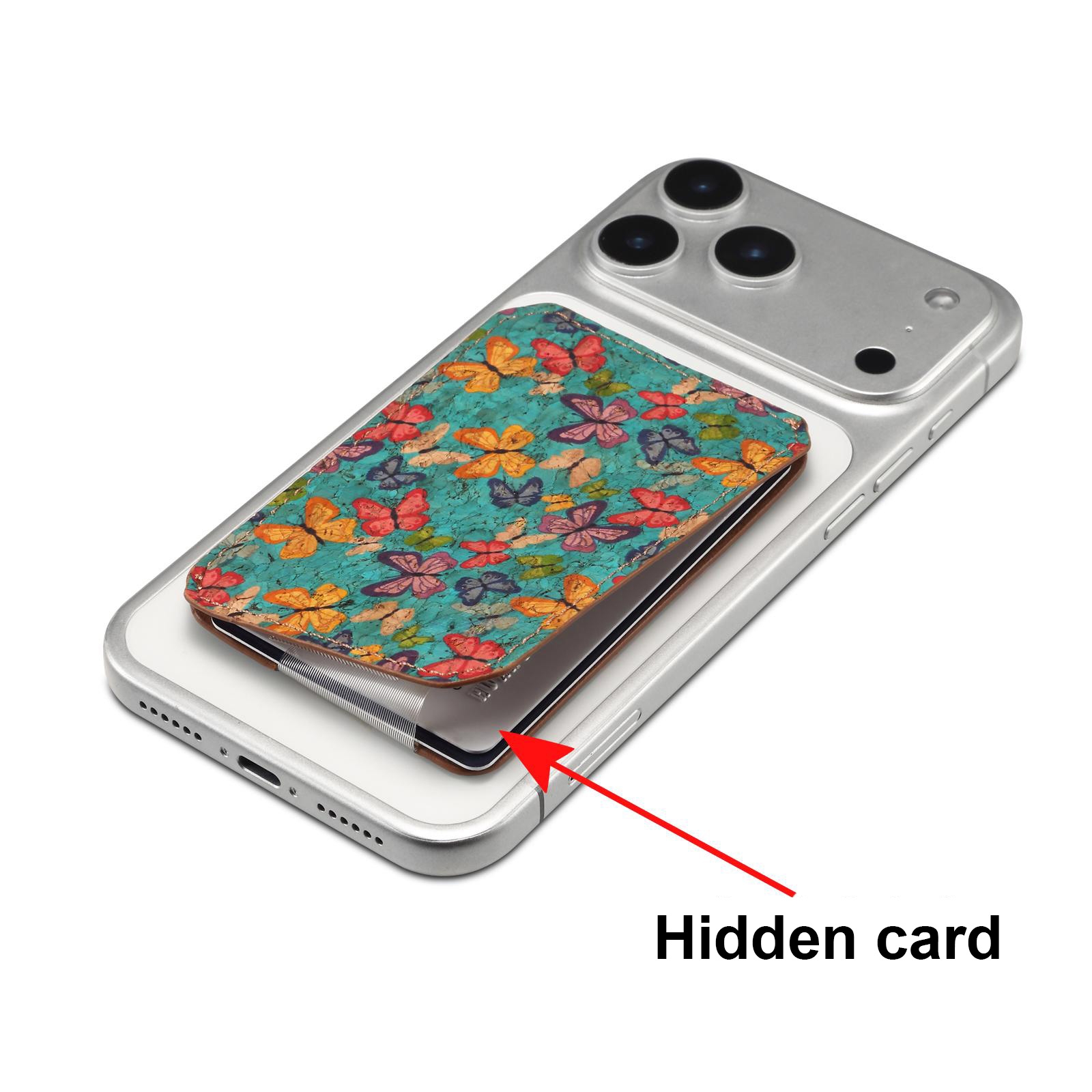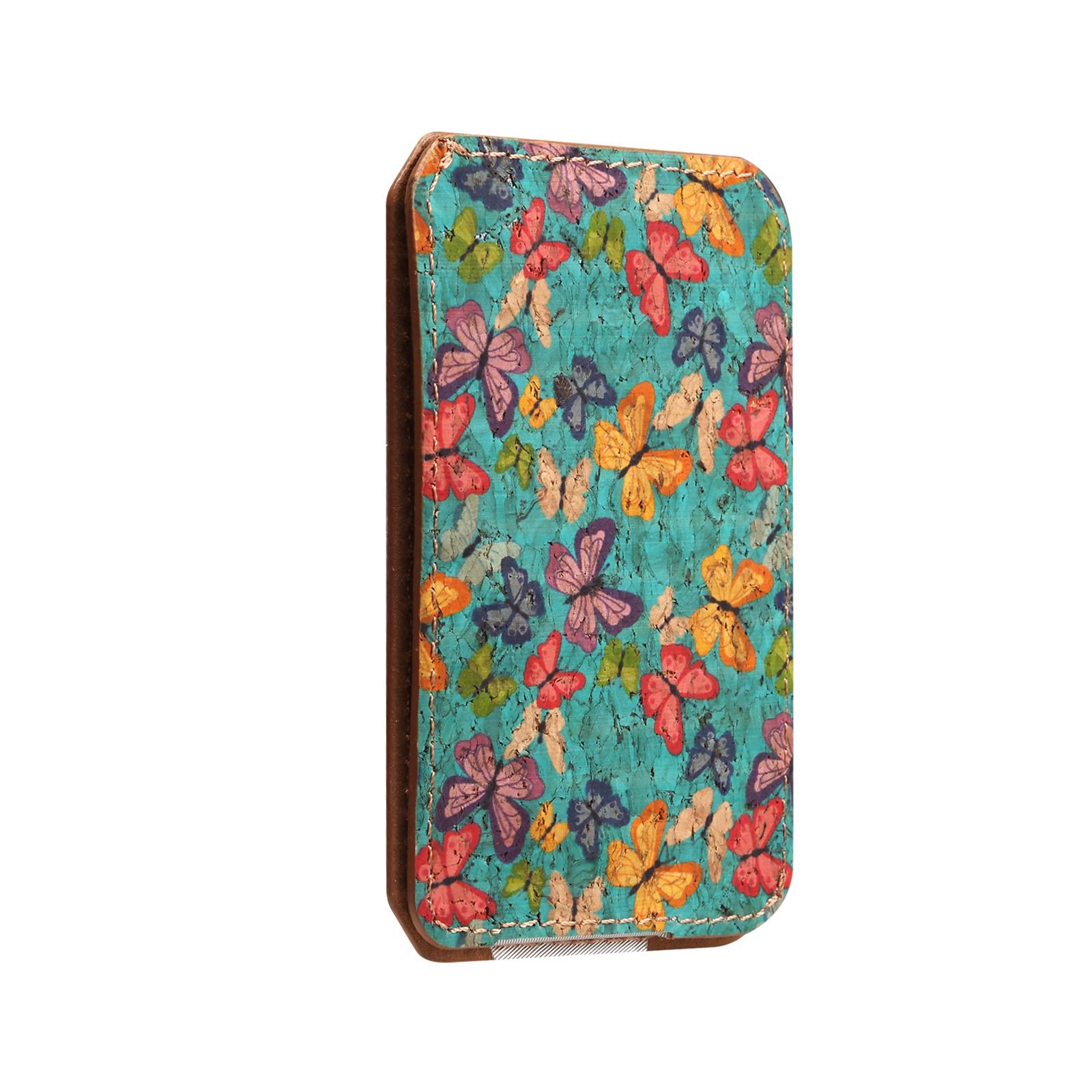 Denior Floral & Butterfly Printed RFID Blocking Magnetic Card Holder | Cork | Holds 2 Cards - Butterfly Blue