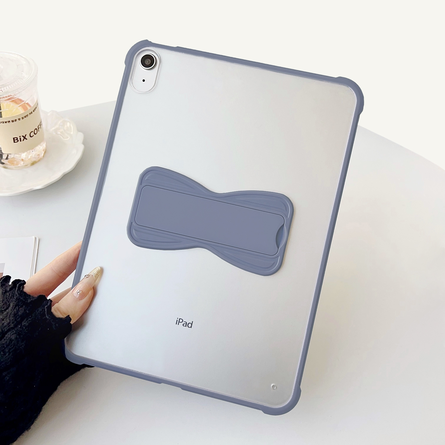 Clear iPad Case with Bow-Shaped Kickstand for Air 4 / Air 5 10.9 Inch / Air 11 2024, Gray