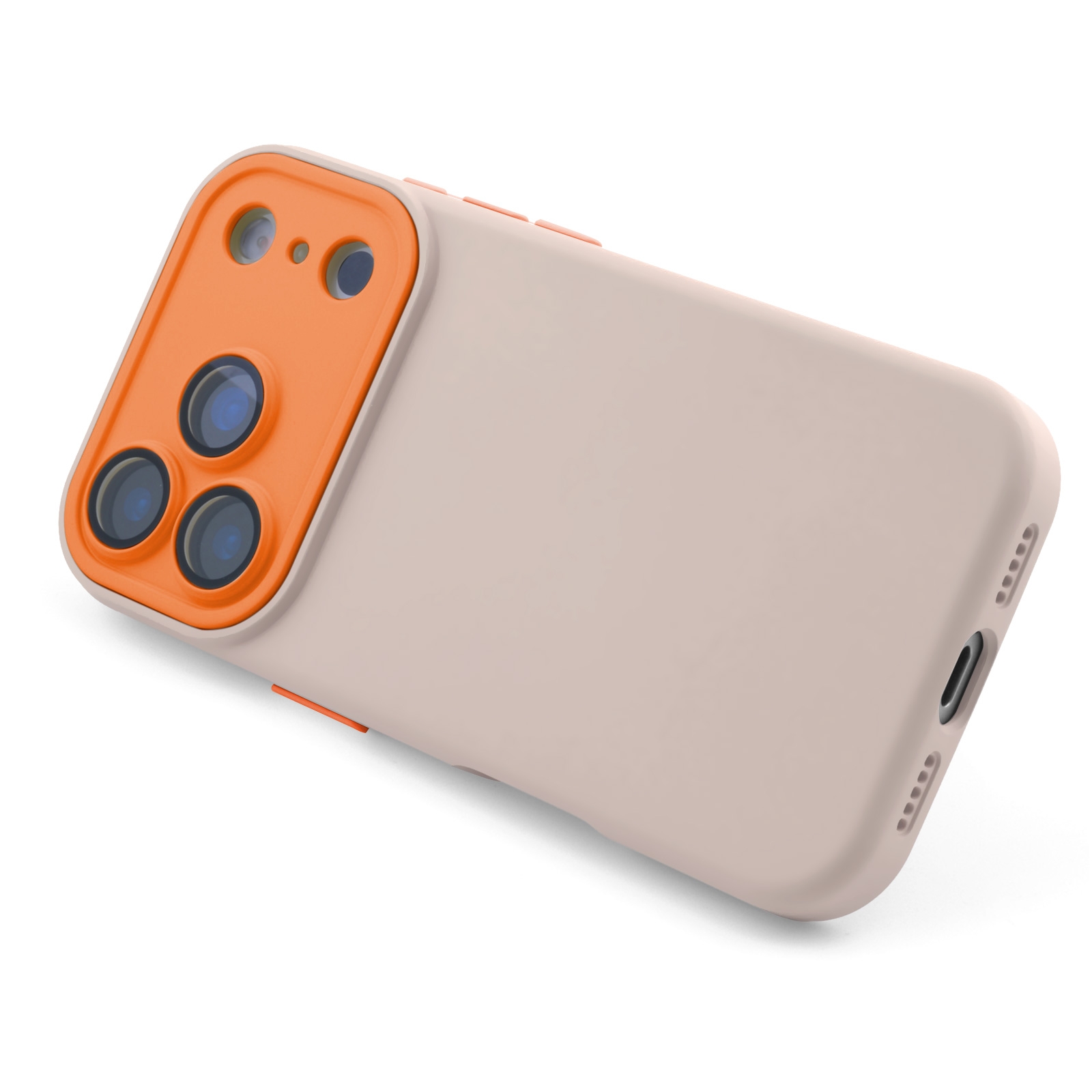 Color Block Silicone Case for iPhone 17 Pro Max - Color Block Lens Protection, Beige