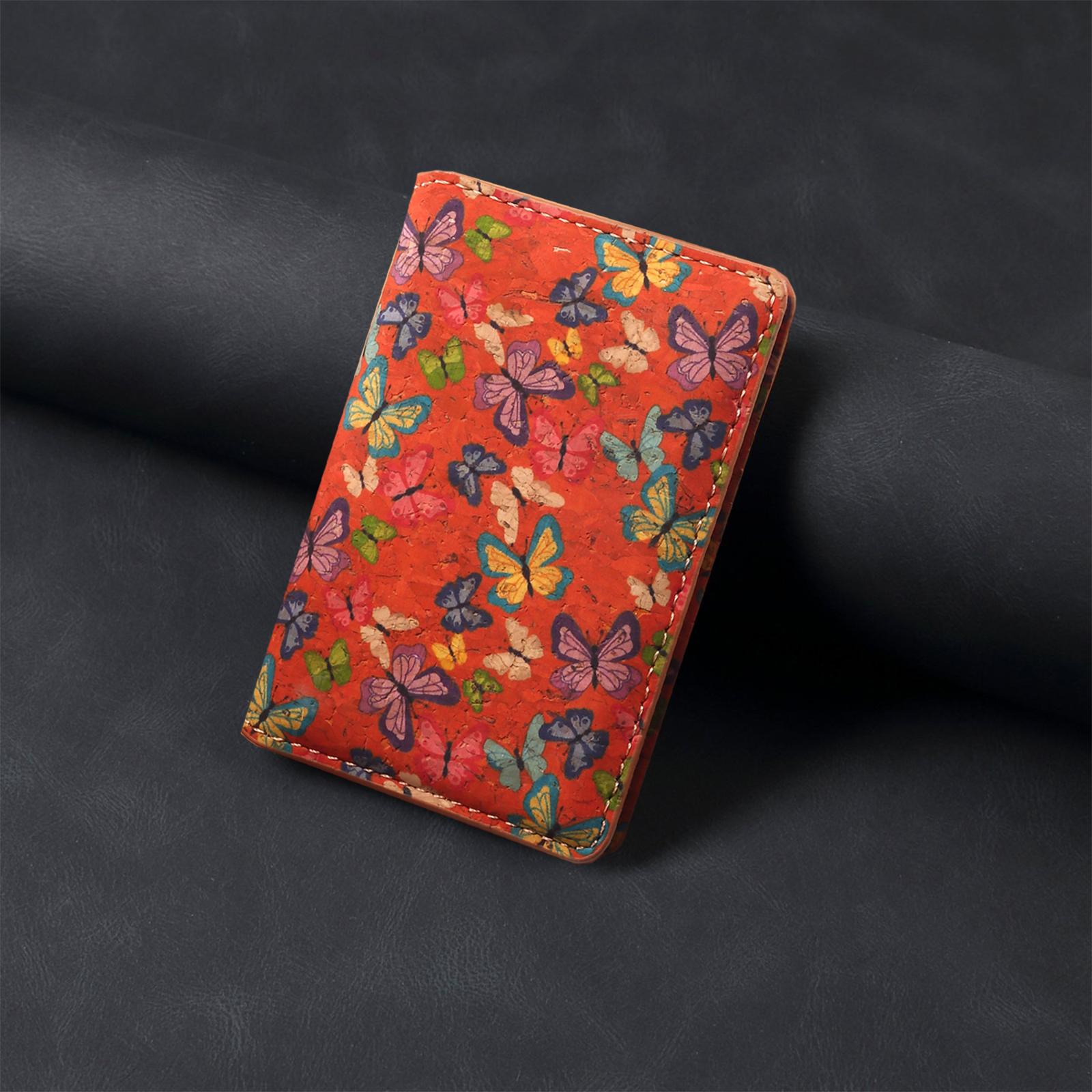 Cork Butterfly Printed N52 Magnetic RFID Blocking Card Holder, Orange