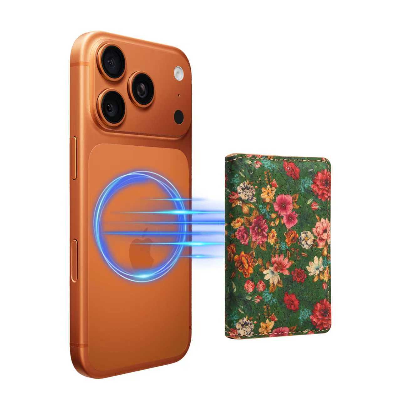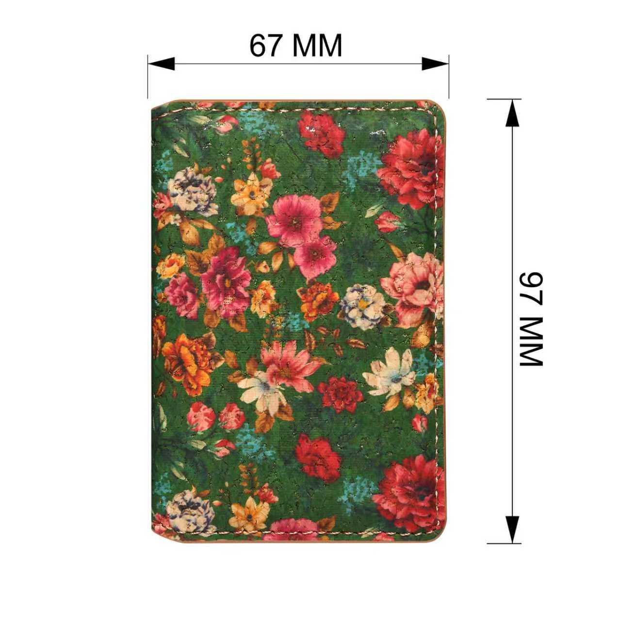 Cork Floral Printed N52 Magnetic RFID Blocking Card Holder, Green
