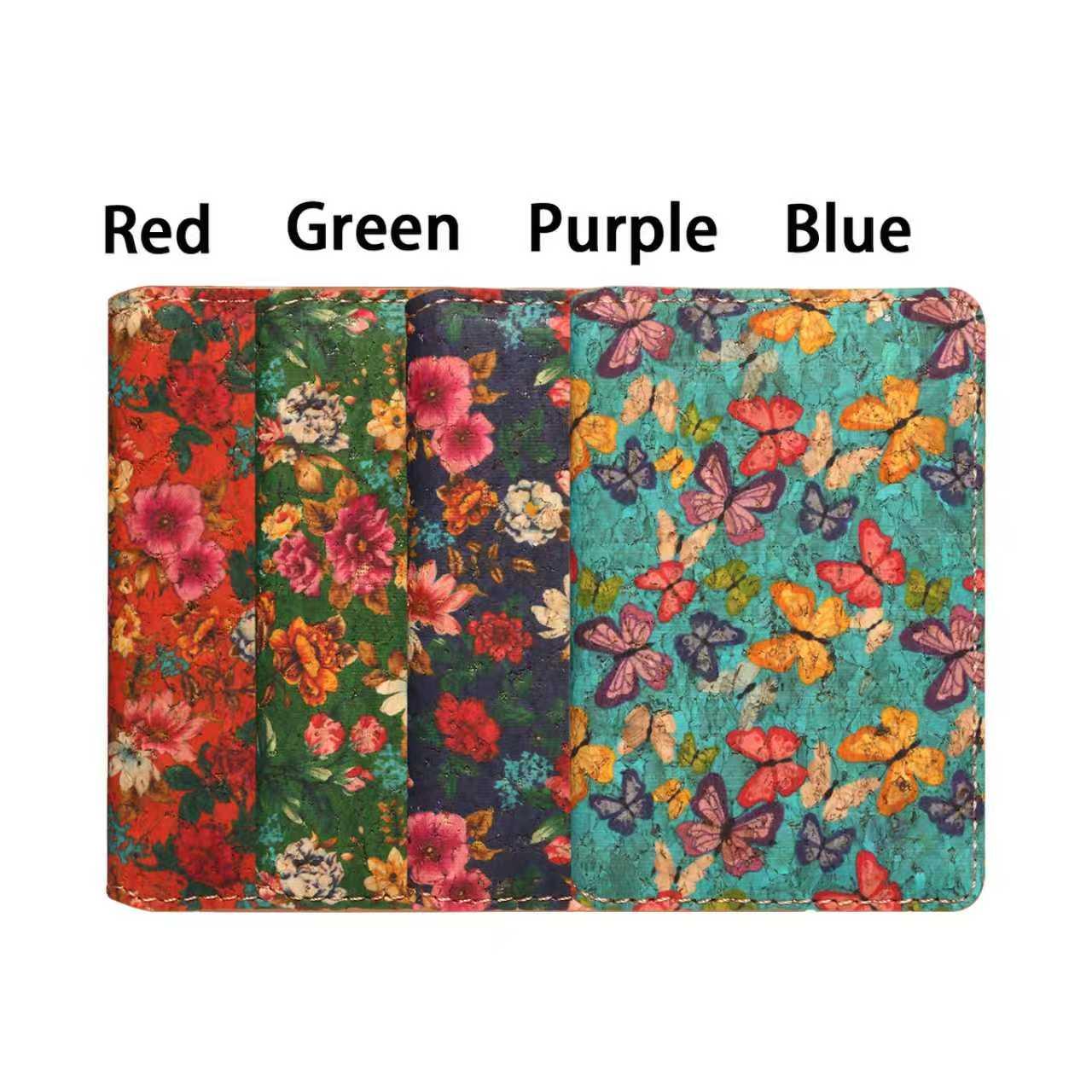Denior Cork Floral & Butterfly Printed N52 Magnetic RFID Blocking Card Holder | Cork | Holds 3 Cards - Peony Green