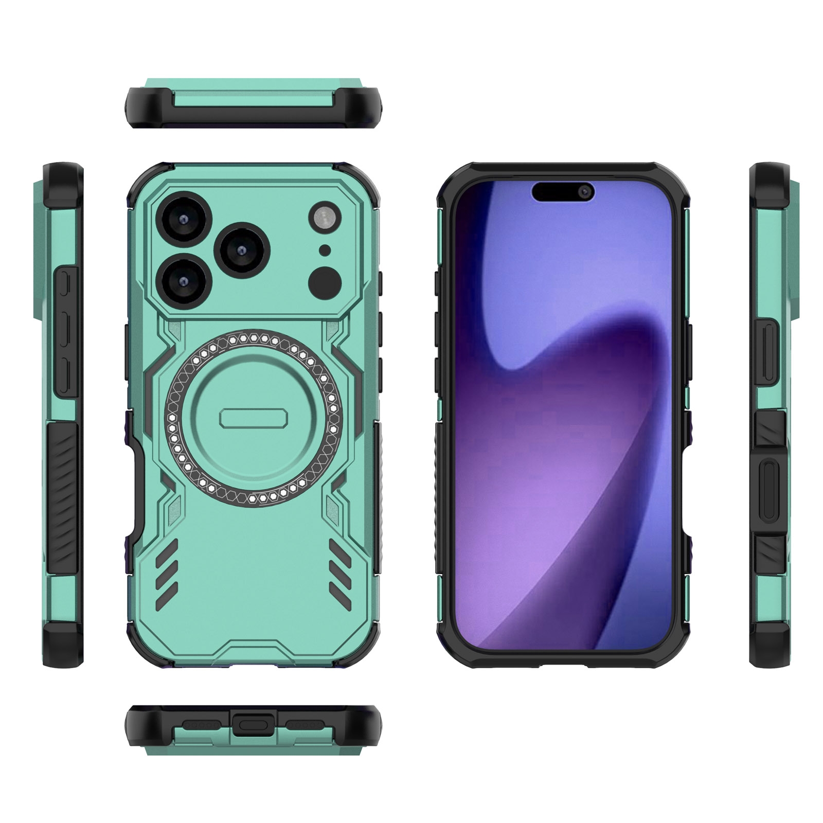 Corner Airbag Shockproof Magnetic iPhone 17 Pro Case - Enhanced Cooling Ventilation, Green